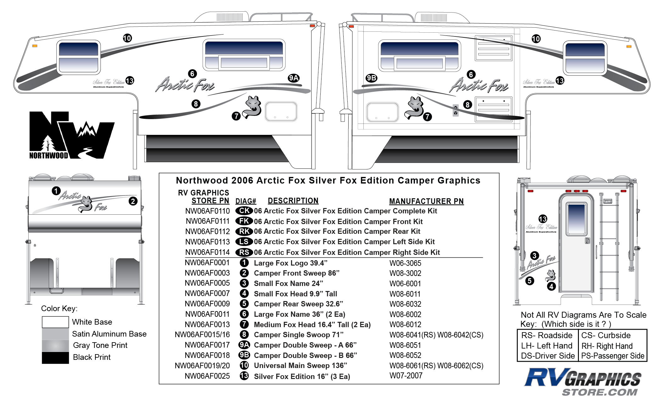 6 Piece 2006 Arctic Fox Camper SFE Curbside Graphics Kit