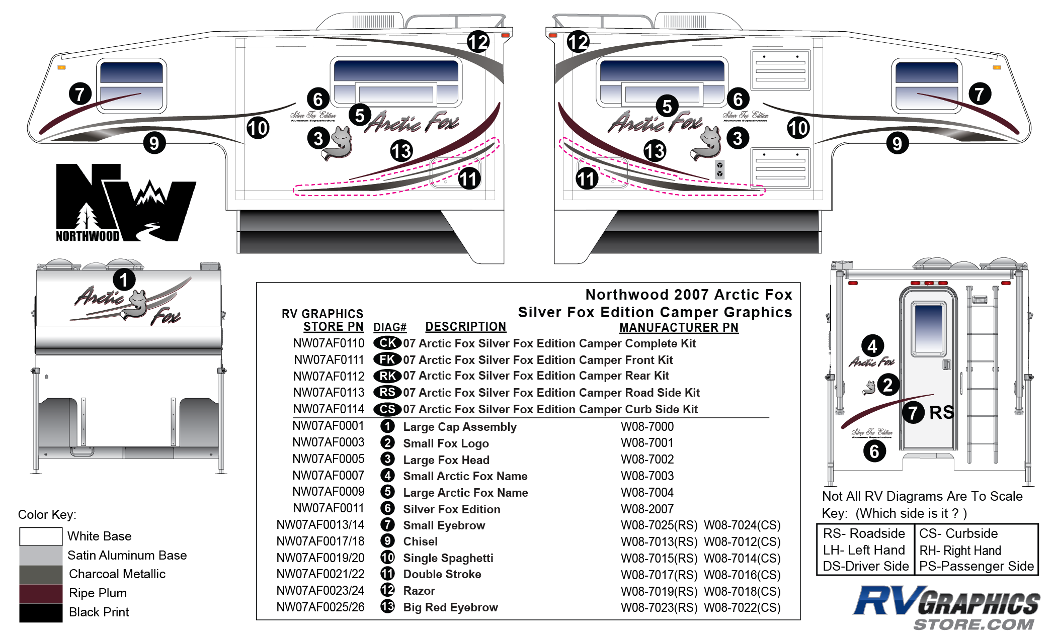 9 Piece 2007 Arctic Fox Camper Silver Fox Edition Curbside Graphics Kit