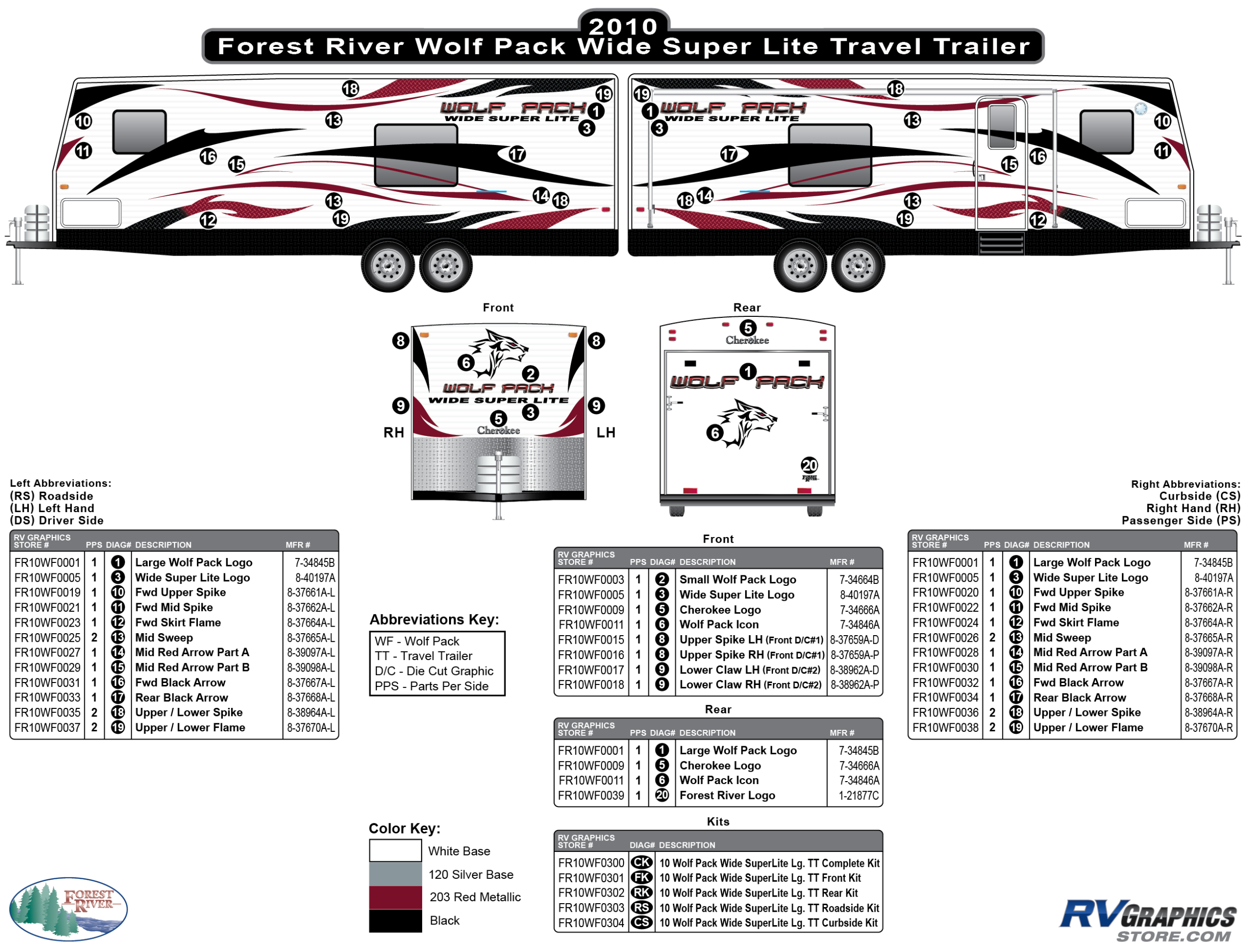 8 Piece 2010 WOLF PACK TT-27 Metal Front Graphics Kit Bullet Number:   FK Color:   4 Base Colors Height (inches):   28 Length (inches):   76.6 Adhesive Type...