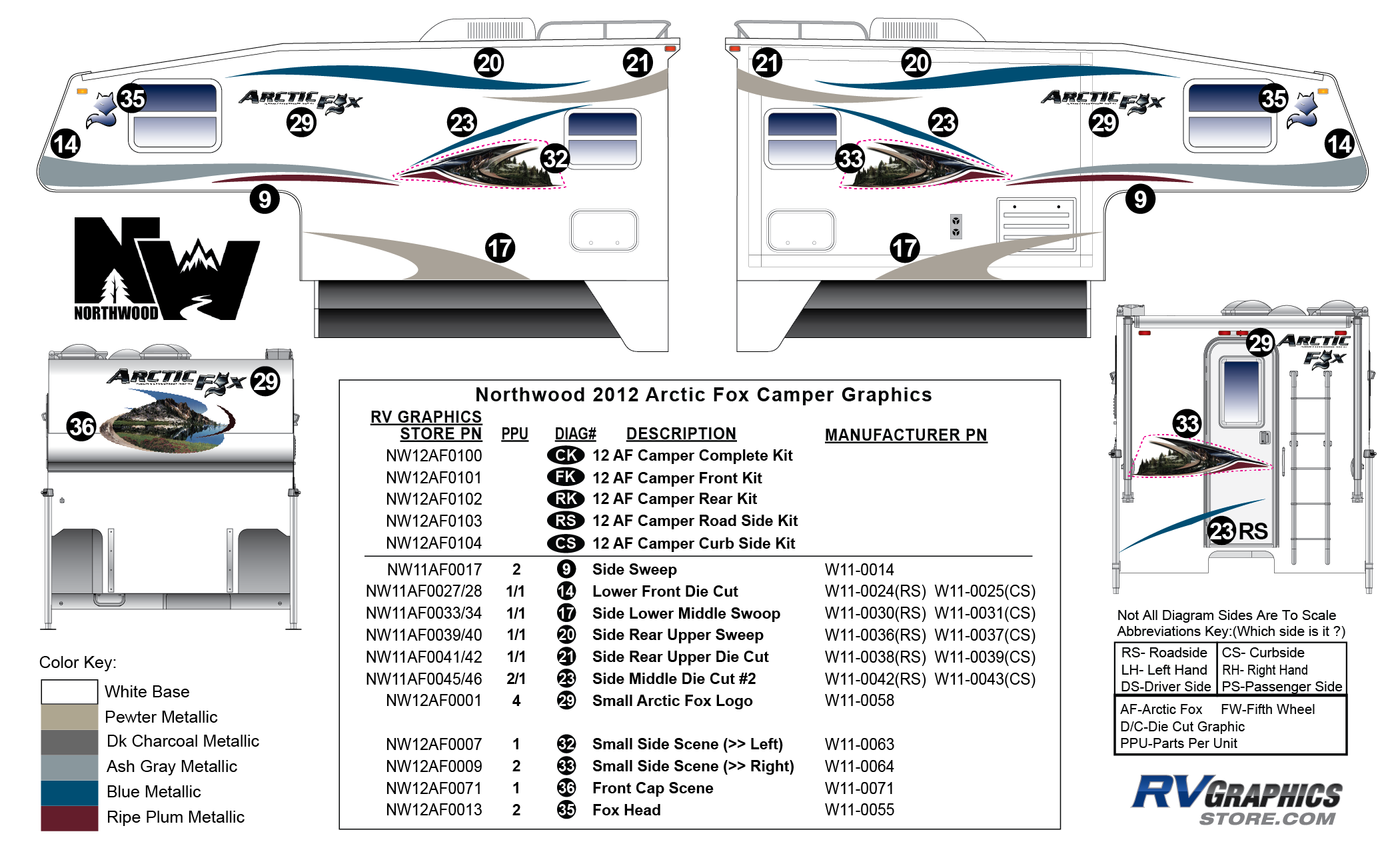 Description: 2011 Arctic Fox Side Graphic Component Bullet Number:   21 Color:   #2049 Pewter Height (inches):   8.3 Length (inches):   62.6 Adhesive Type Provided:...