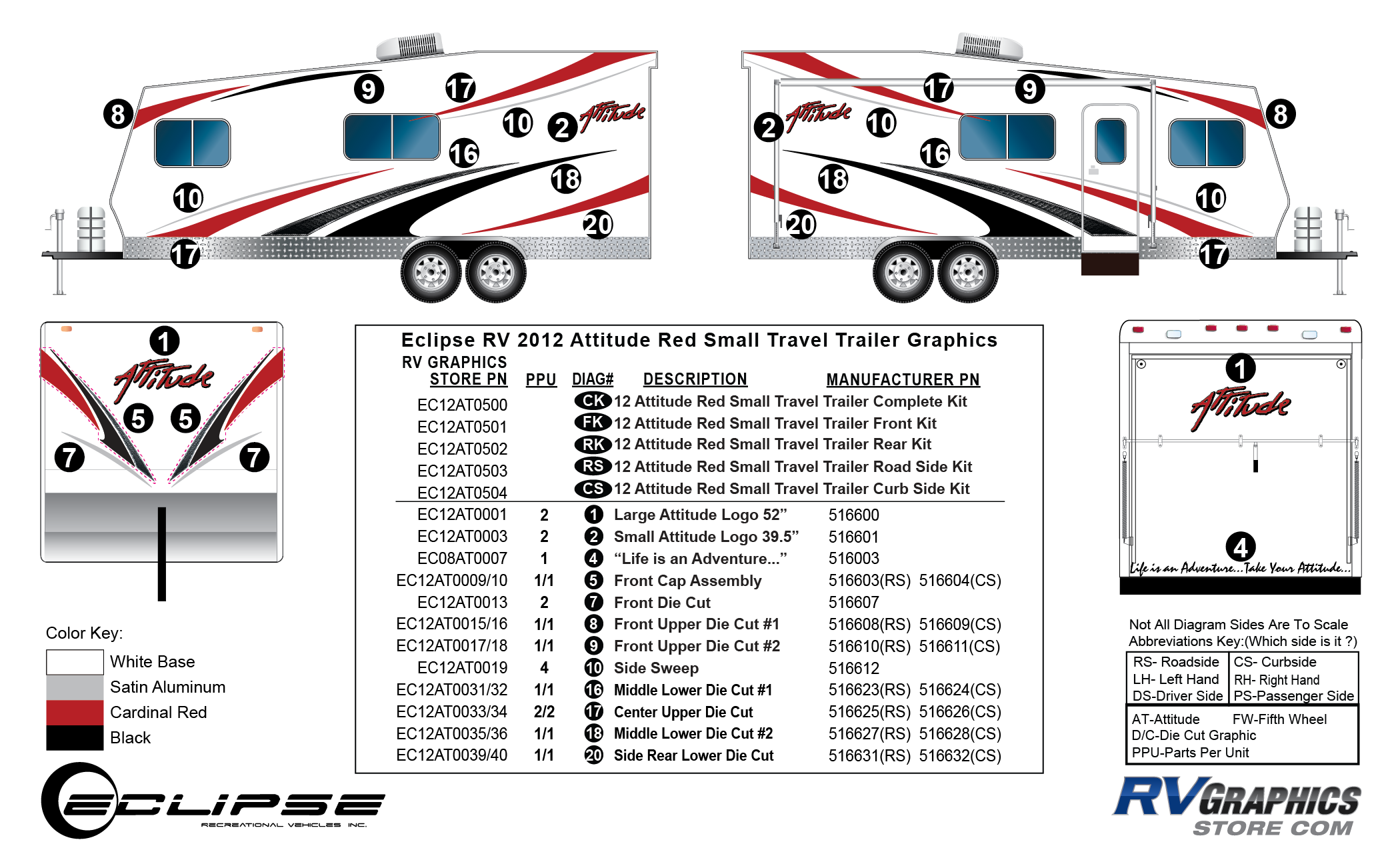 2012 RED Attitude Sm Travel Trailer Complete Graphics Kit