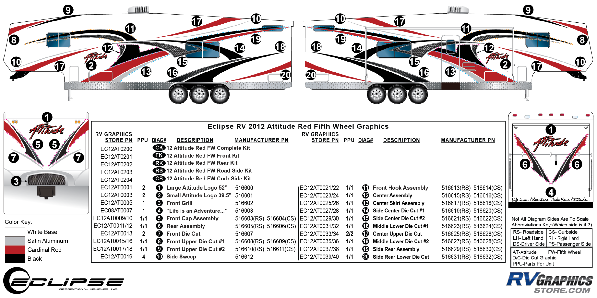 2012 RED Attitude Fifth Wheel Complete Graphics Kit