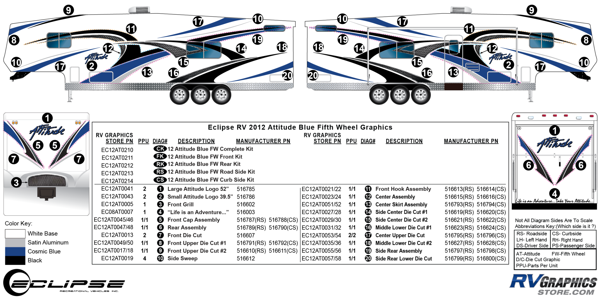 2012 BLUE Attitude Fifth Wheel Complete Graphics Kit