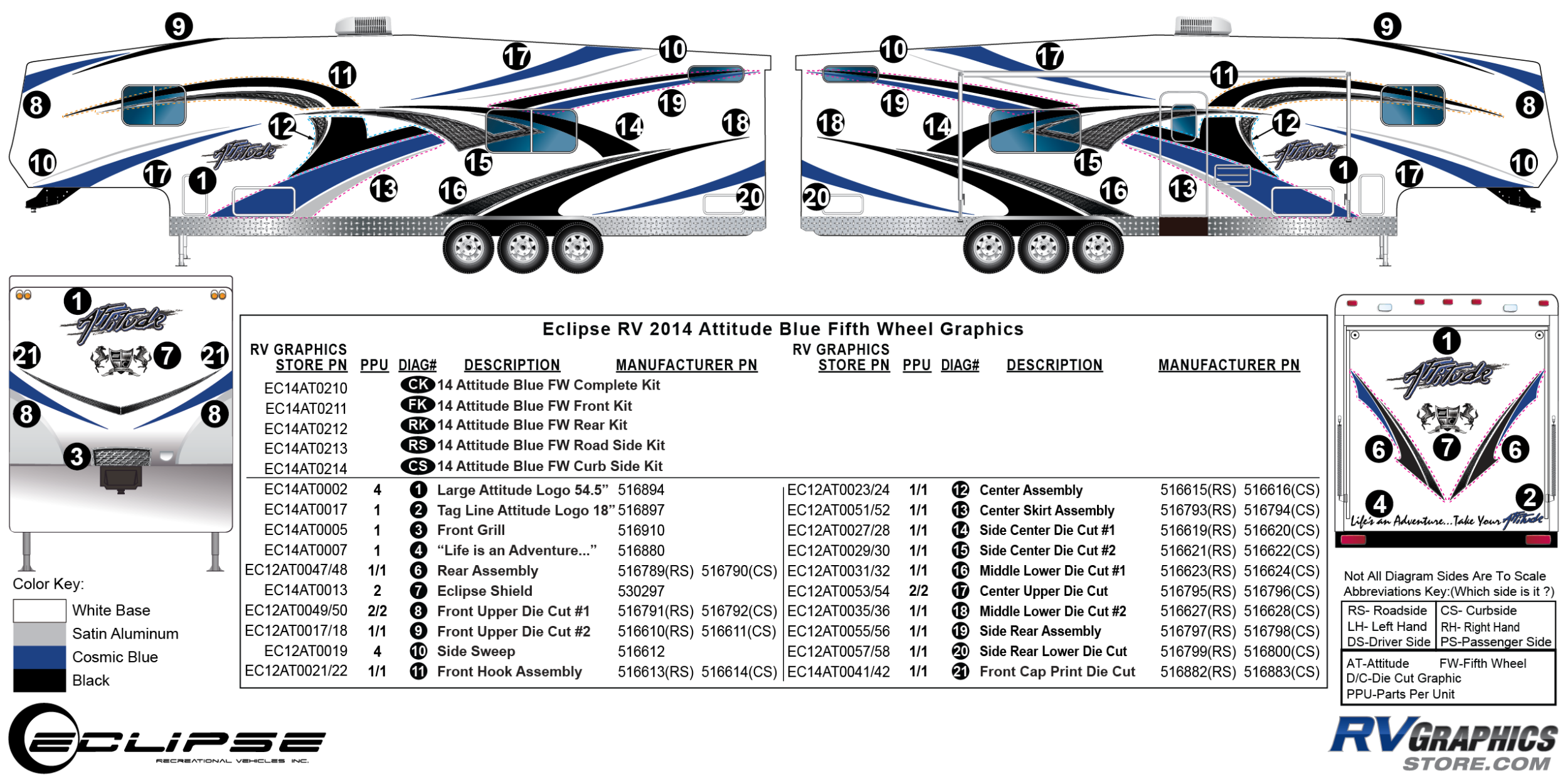 2014 BLUE Attitude Fifth Wheel Complete Graphics Kit