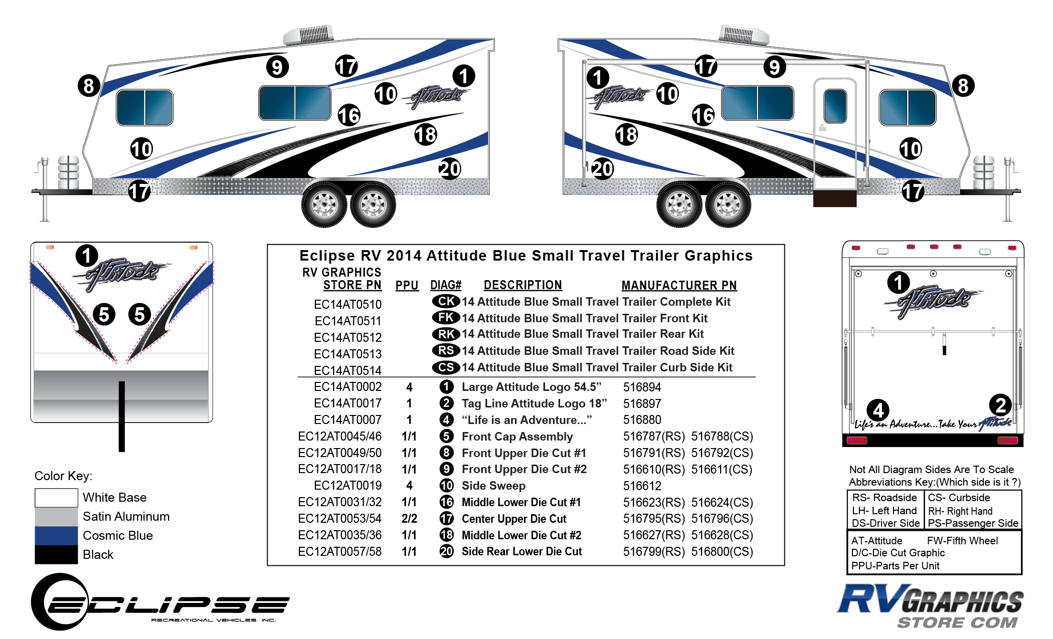 2014 BLUE Attitude Sm Travel Trailer Complete Graphics Kit