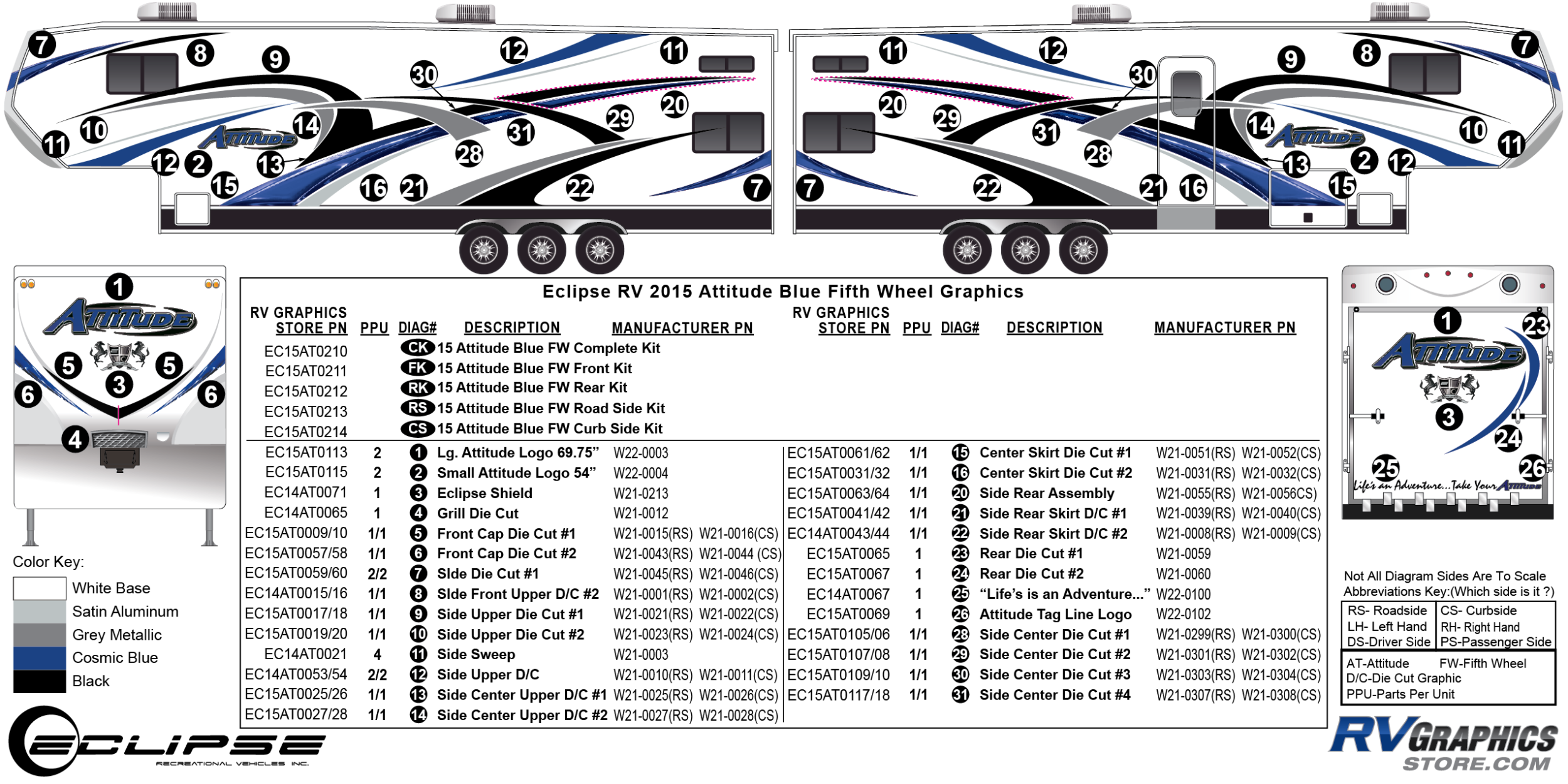 Description: 55 Piece 2015 Attitude FW Complete Graphics Kit Bullet Number:   CK Color:   5 Base Colors Height (inches):   25 Length (inches):   165 Adhesive Type...