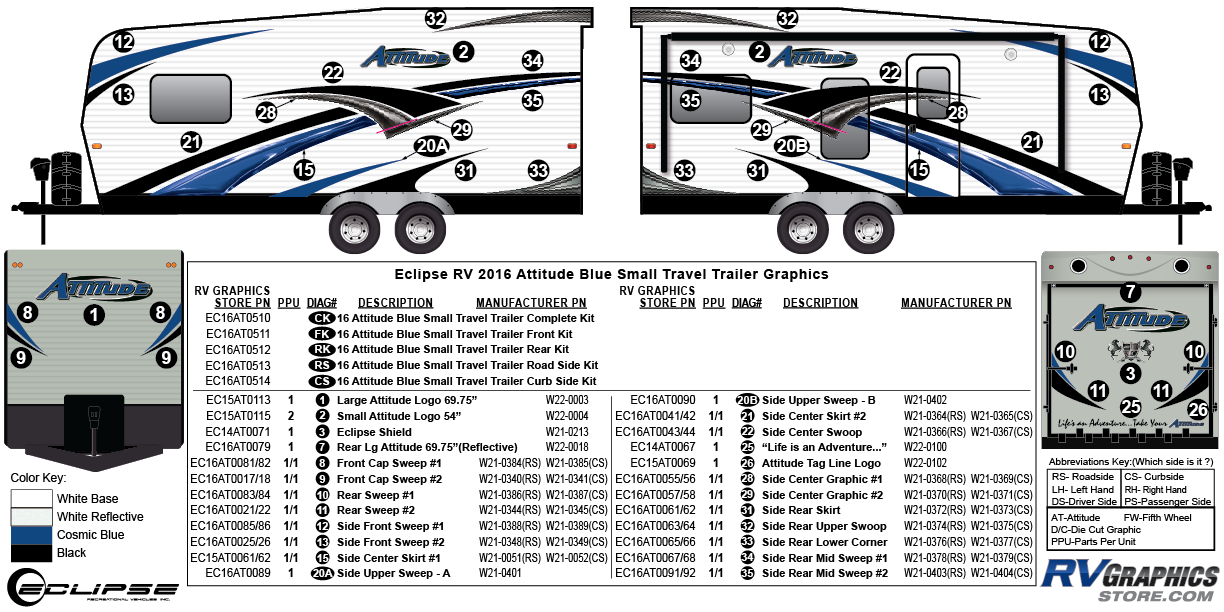 Description: 14 Piece 2016 Attitude Sm TT Right Side Graphics Kit Bullet Number:   CS Color:   4 Base Colors Height (inches):   18 Length (inches):   140 Adhesive Type...More Details »