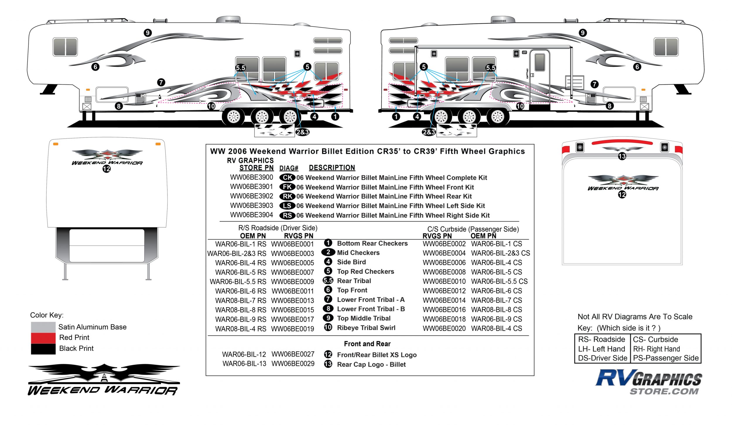 Description: 10 Piece 06 WW Mainline Billet 35 to 39 FW Curbside Kit