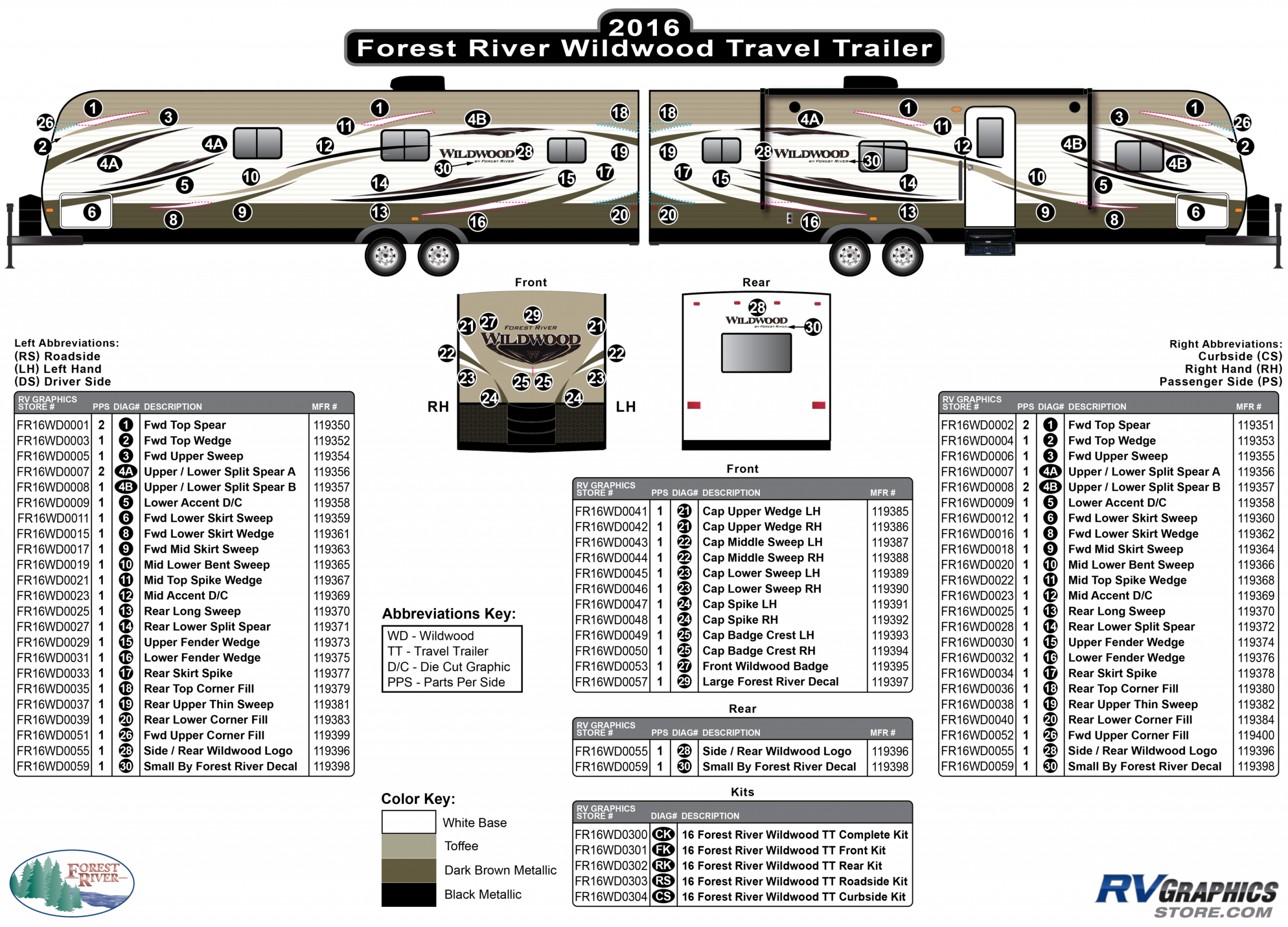 Description: 64 Piece 2016 Wildwood RV Graphics Complete Graphics Kit