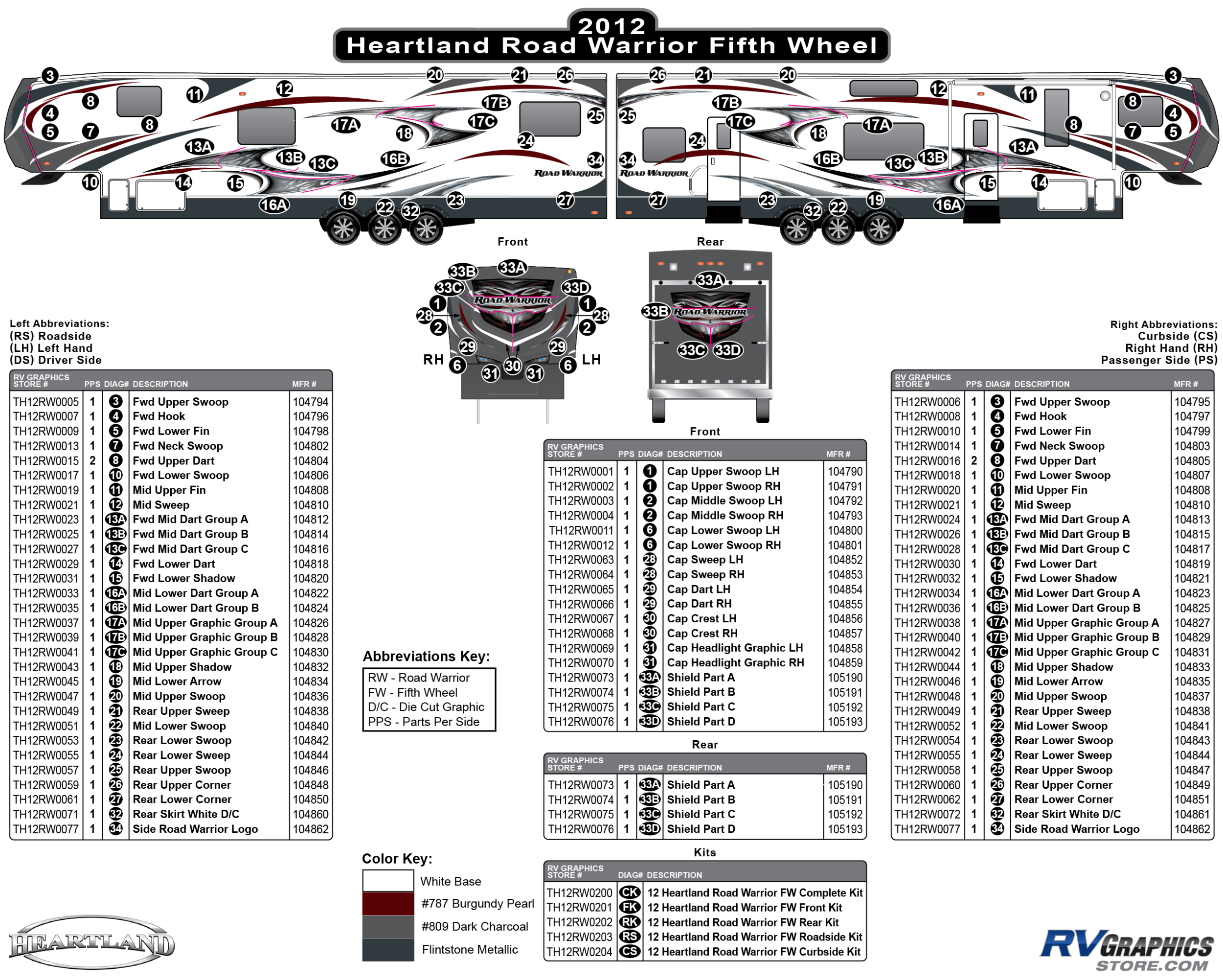 Description: 31 Piece 2012 Heartland Road Warrior Curbside Graphics Kit