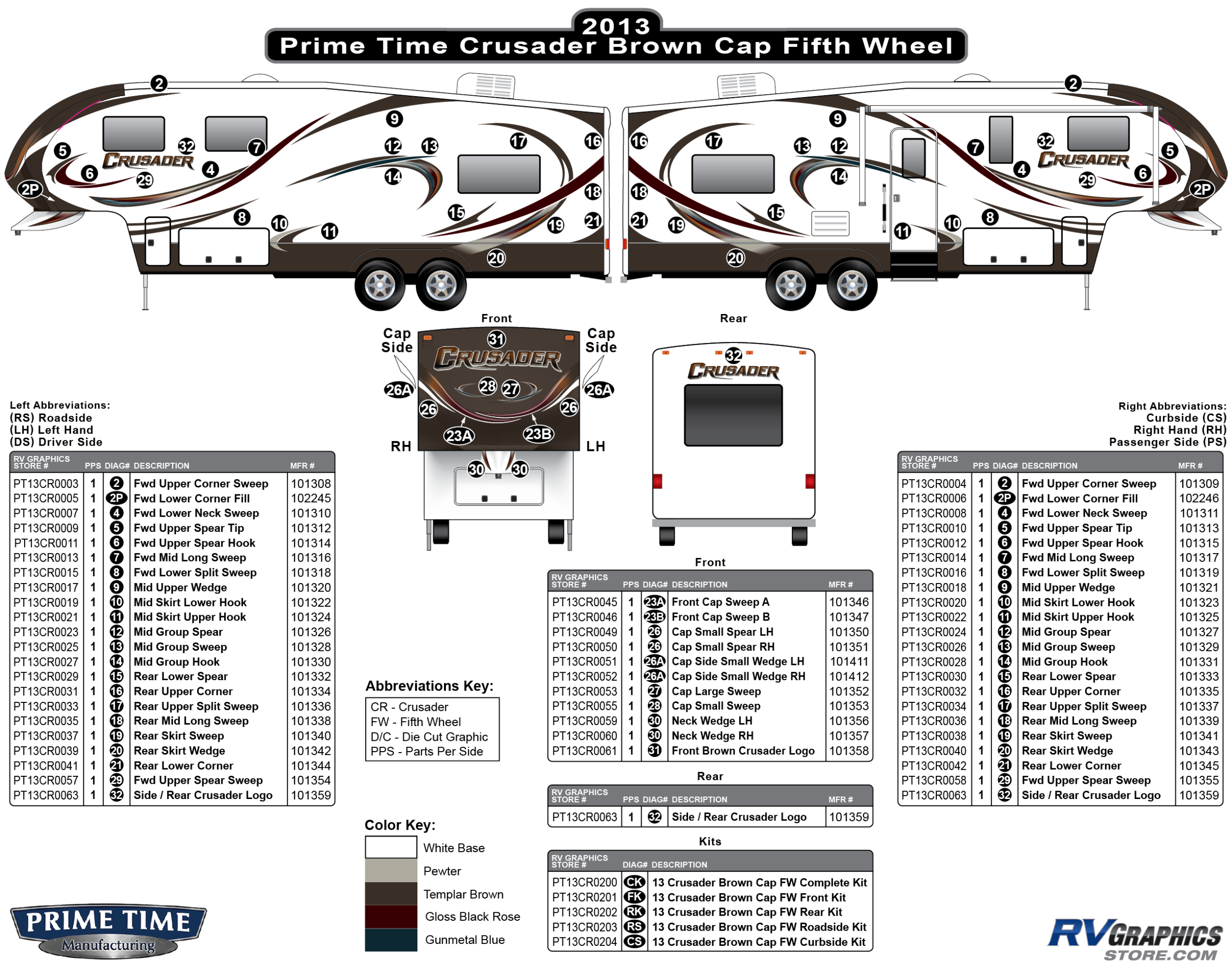 56 Piece 2013 Crusader FW Brown Complete Graphics Kit