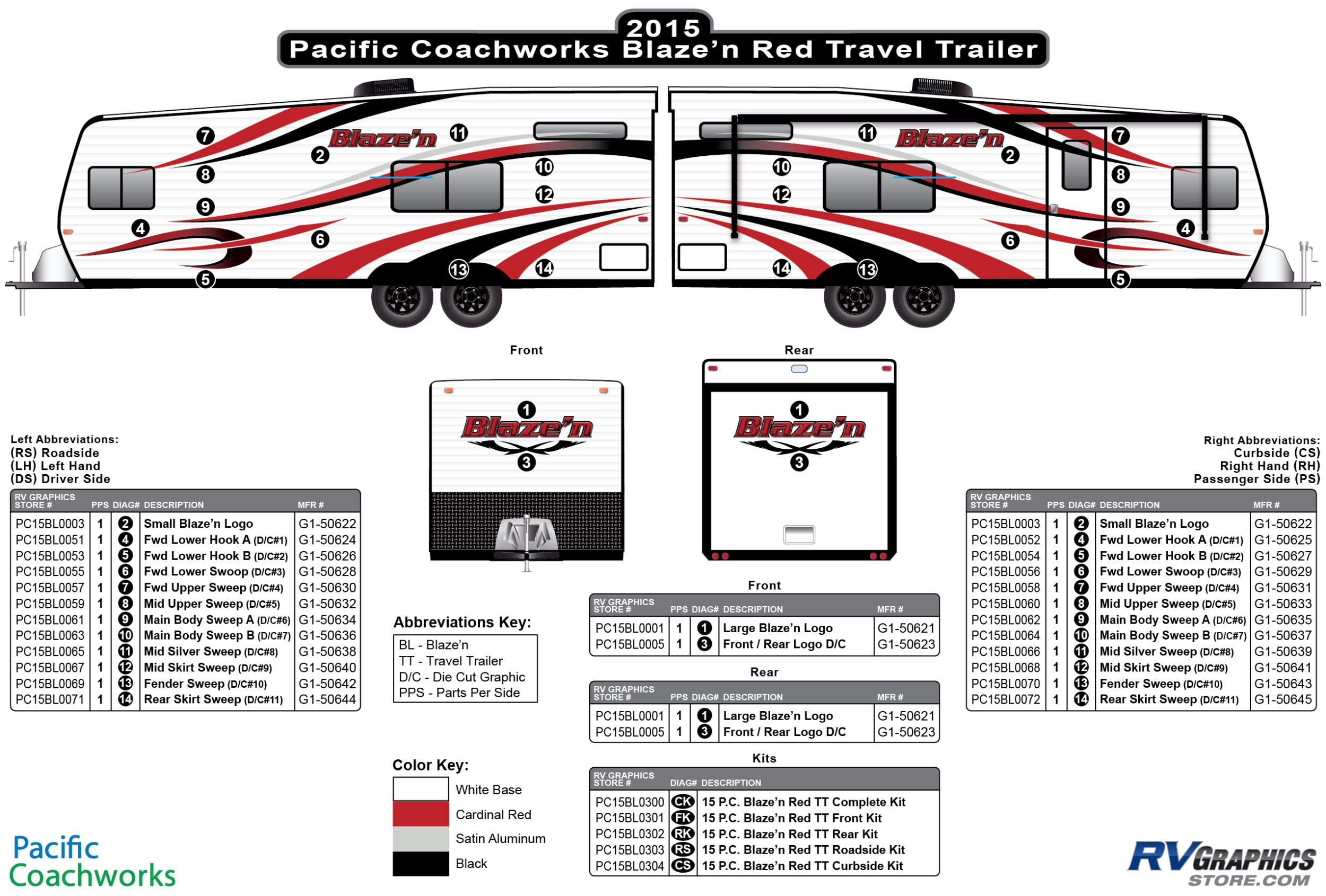 28 Piece 2015 Blaze'n Red Travel Trailer Complete Graphics Kit