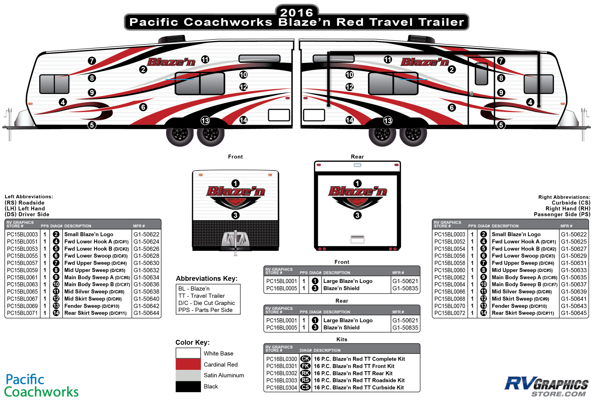 Description: 12 Piece 2016 Blaze'n Red Travel Trailer Curbside Decal Kit