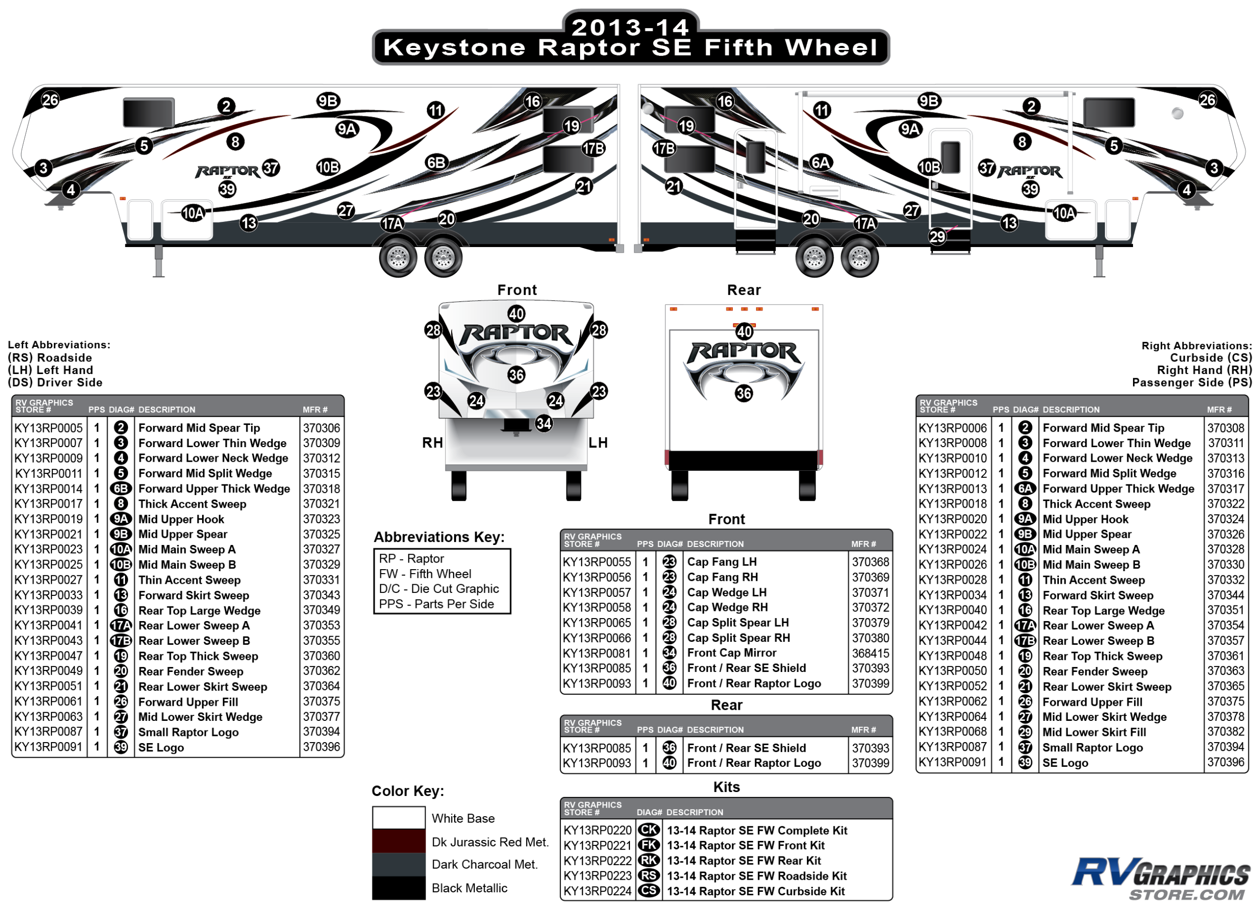 Description: 22 Piece 2013 Raptor SE FW Roadside Decal Kit