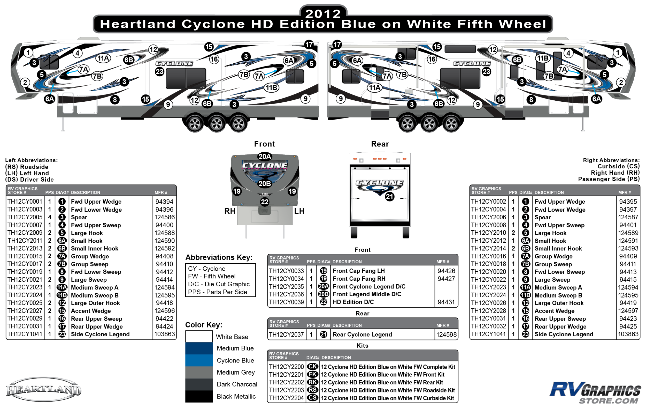 29 Piece 2012 Cyclone FW Curbside Graphics Kit Blue/Gray Version