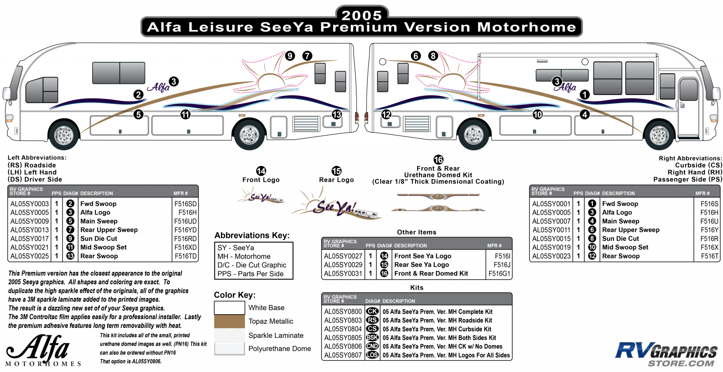 Description: 2005 Seeya Motorhome RV Decal Complete Kit-