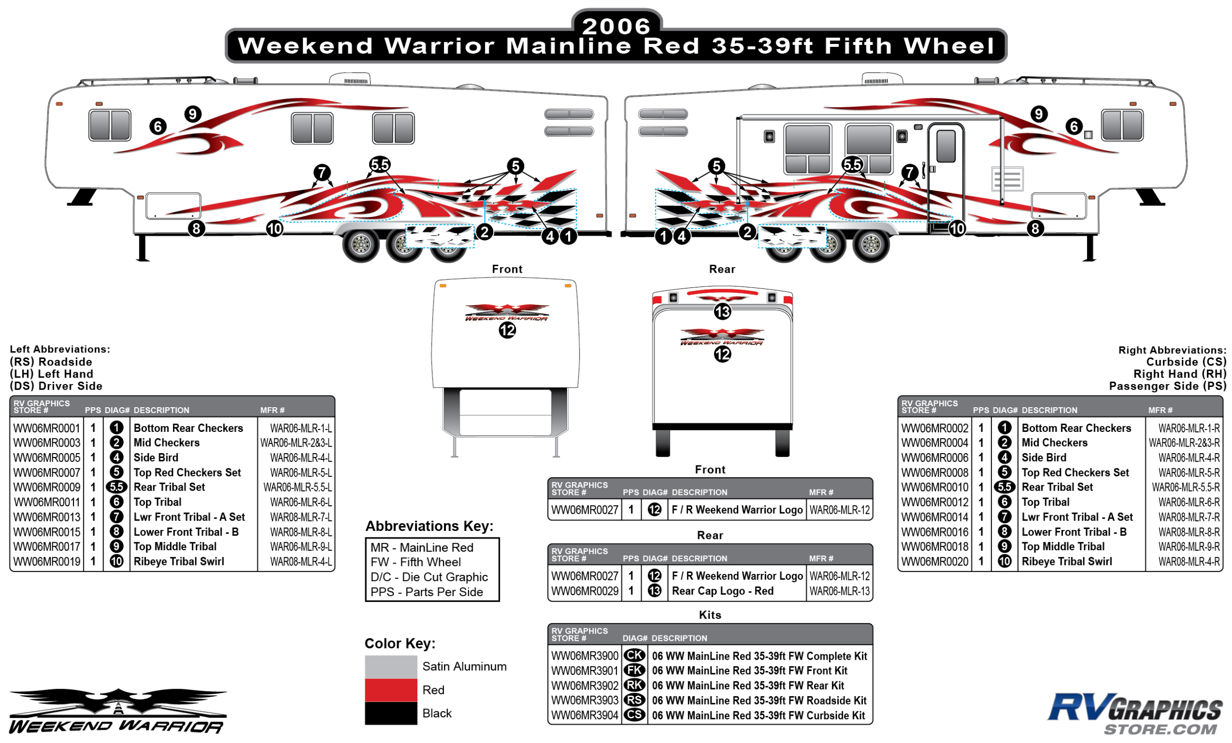 10 piece 2006 Warrior Mainline 35-39' FW Roadside Graphics Kit
