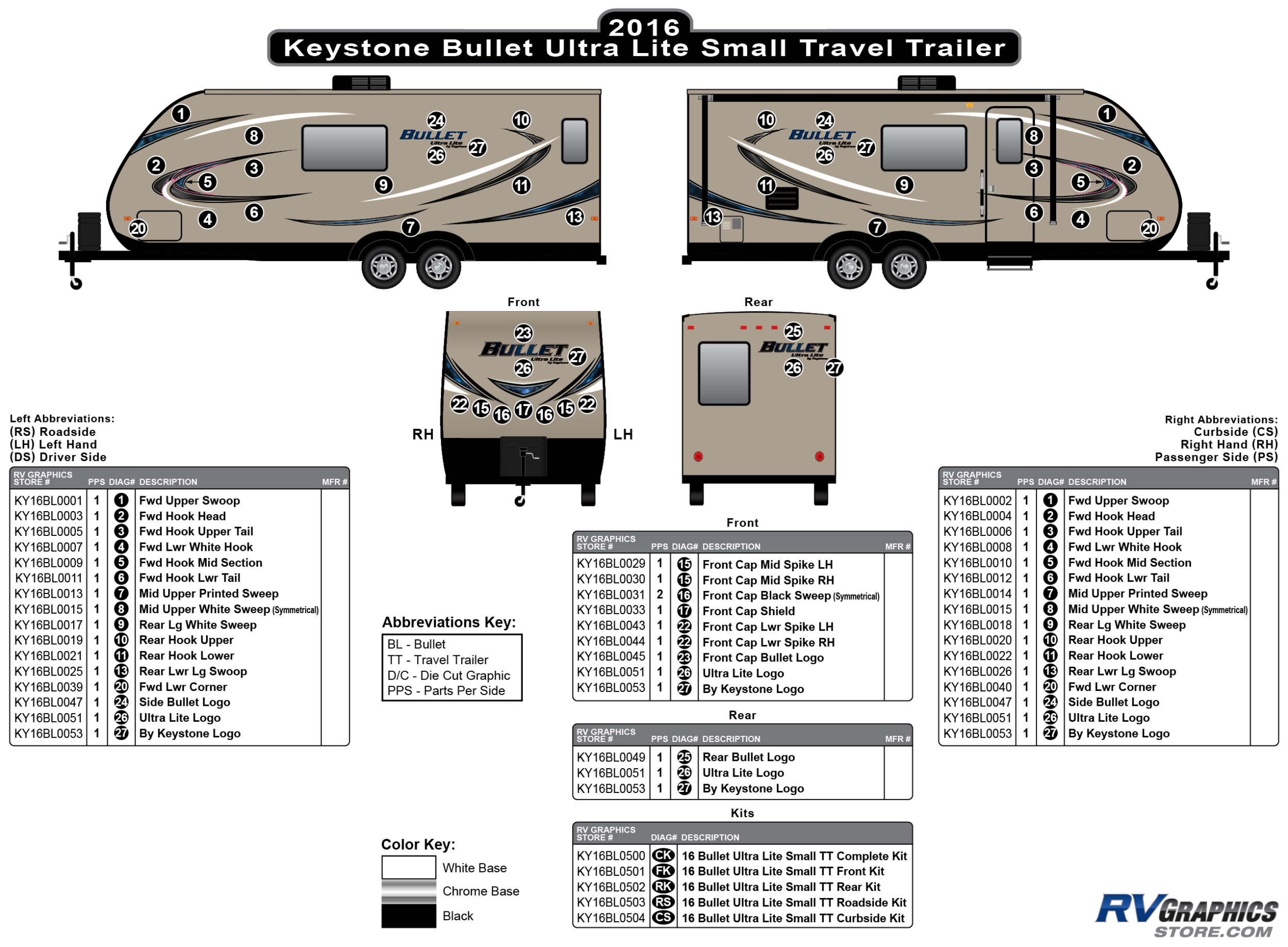 16 Piece 2016 Bullet UltraLite Sm TT Curbside Graphics Kit