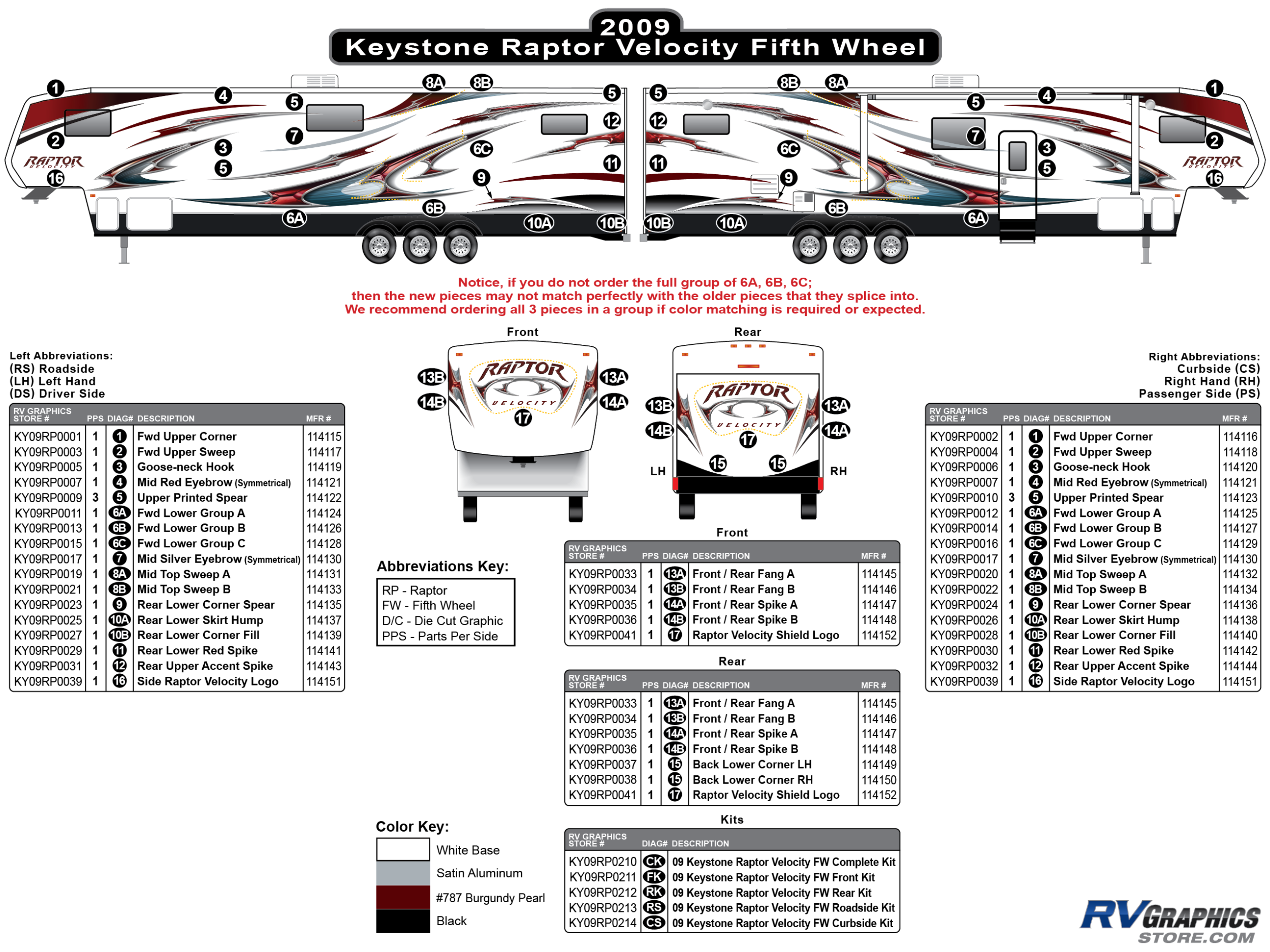 19 Piece 2009 Raptor Velocity Curbside Graphics Kit