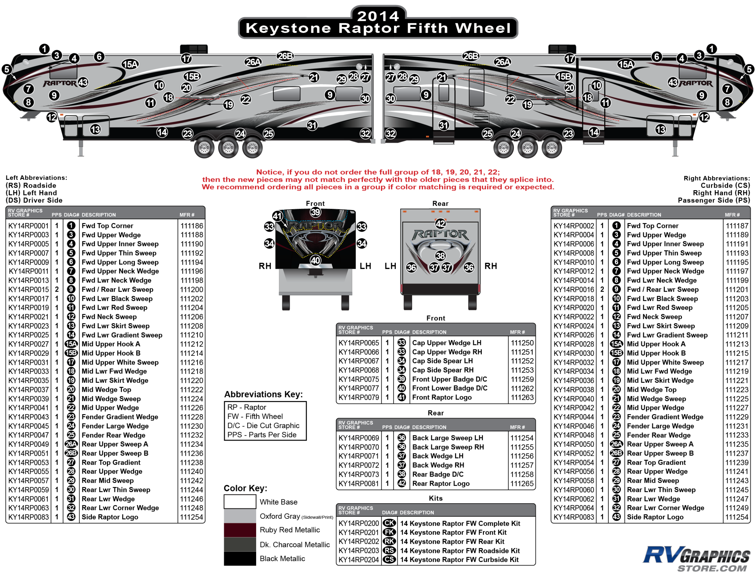 Description: 2014 Raptor RV Graphics Complete Kit Bullet Number: CK Color: 3 Base Colors Height (inches): Length (inches}: Adhesive Type Provided: Controltac Paper Application...More Details »