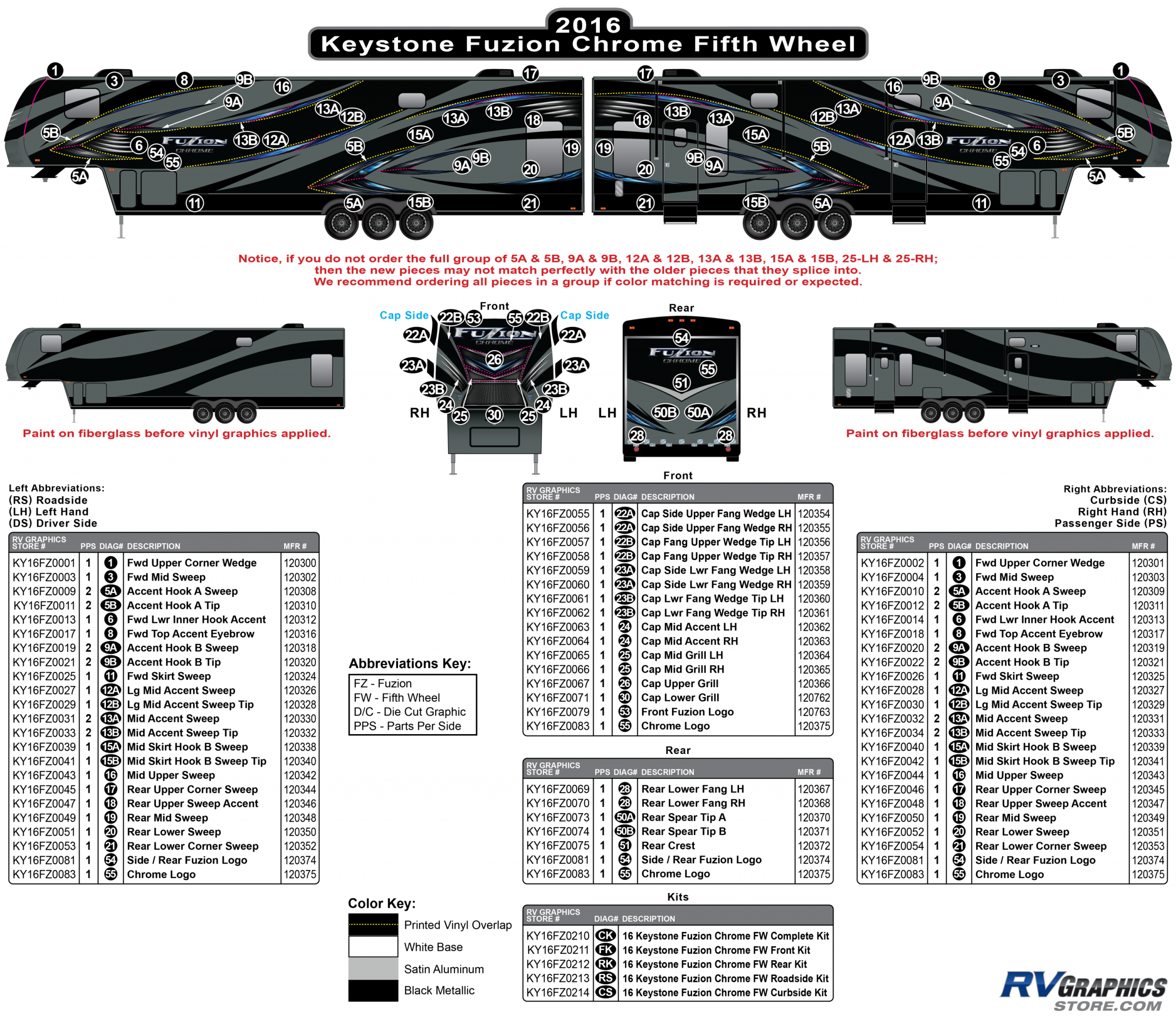 Description: 2016 Fuzion RV Graphics Complete Kit Bullet Number: CK Color: 3 Base Colors Height (inches): 22.2 Length (inches}: 182 Adhesive Type Provided: Controltac Paper...More Details »