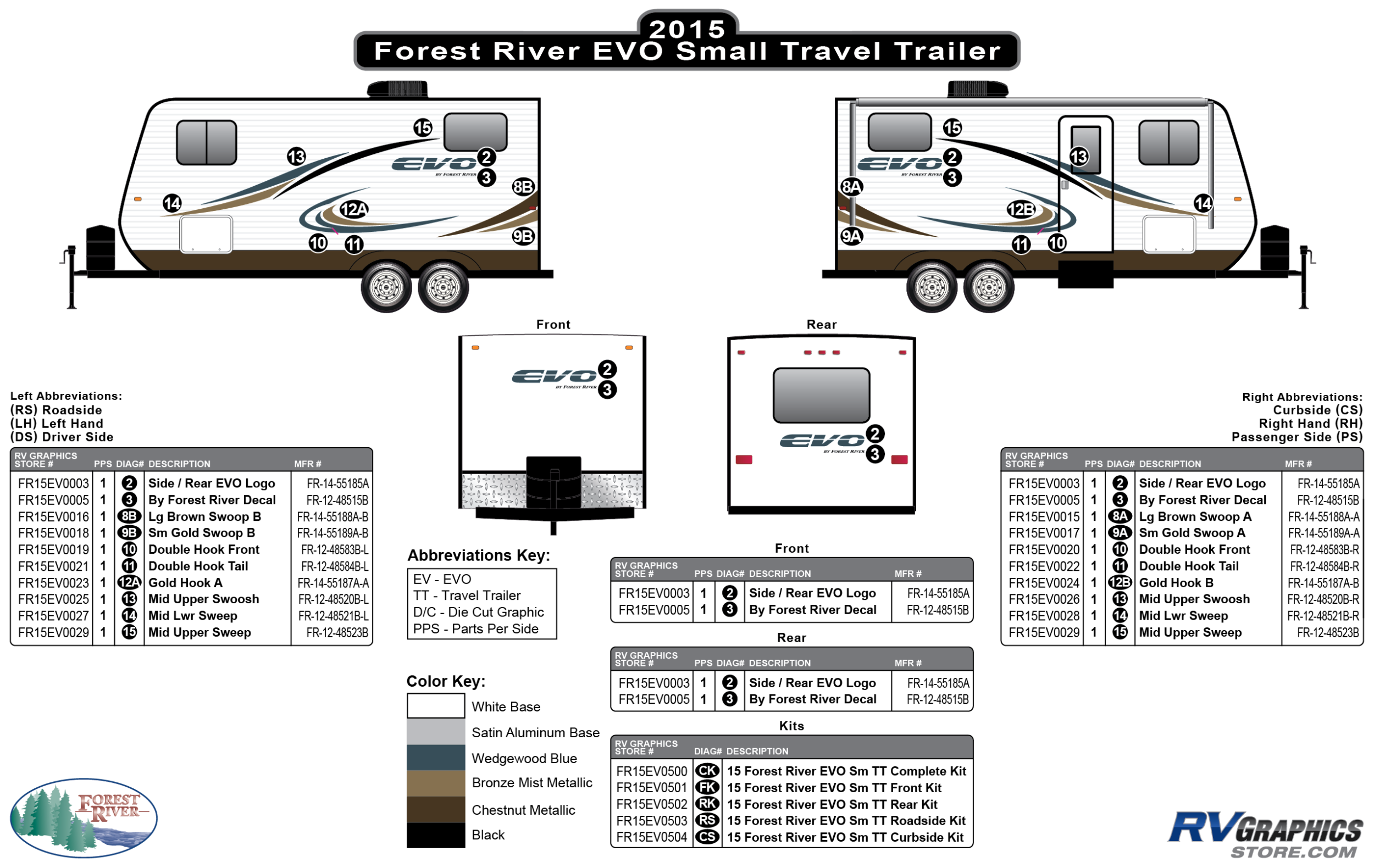 24 Piece 2015 EVO Sm Travel Trailer Complete Graphics Kit