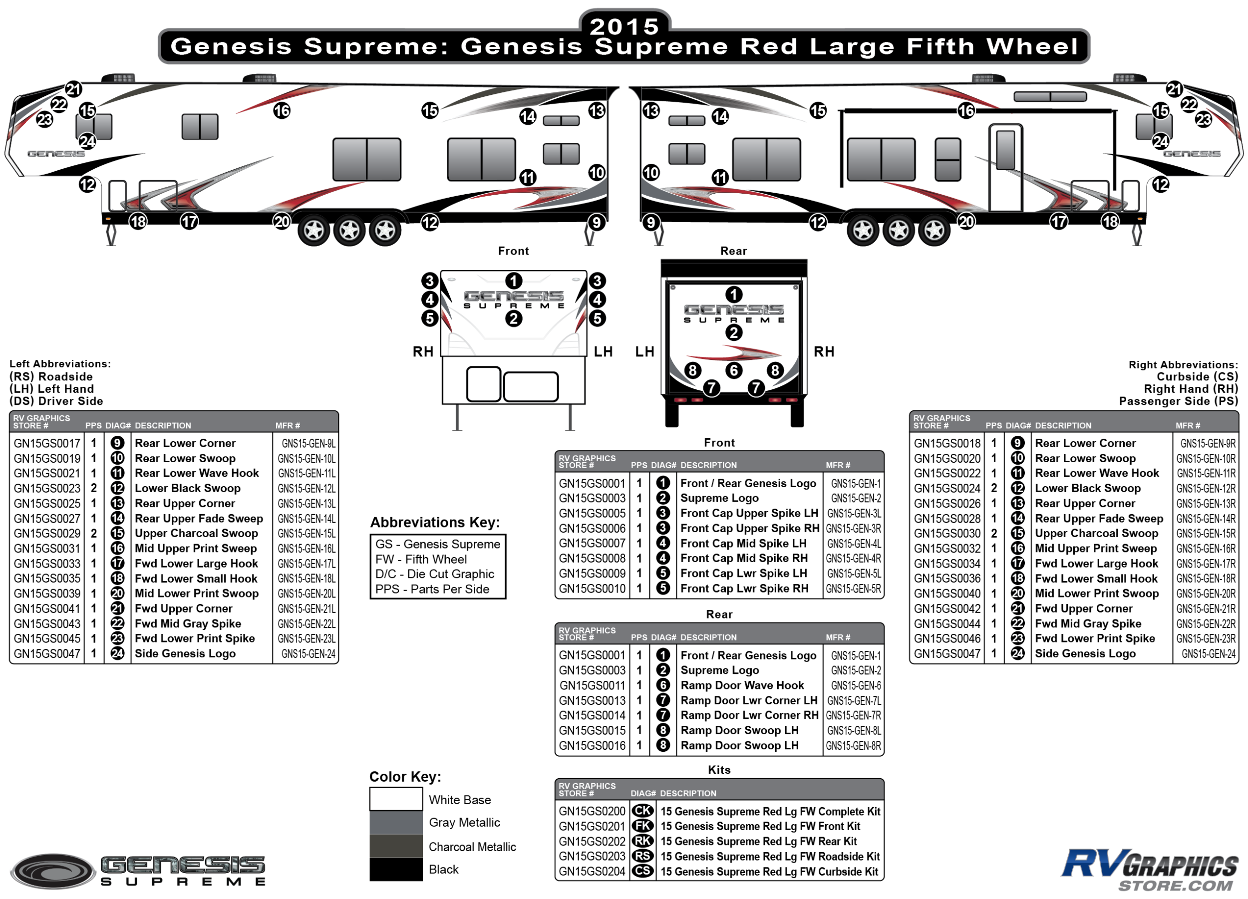 17 Piece 2015 Genesis Red Lg Fifth Wheel Curbside Graphics Kit