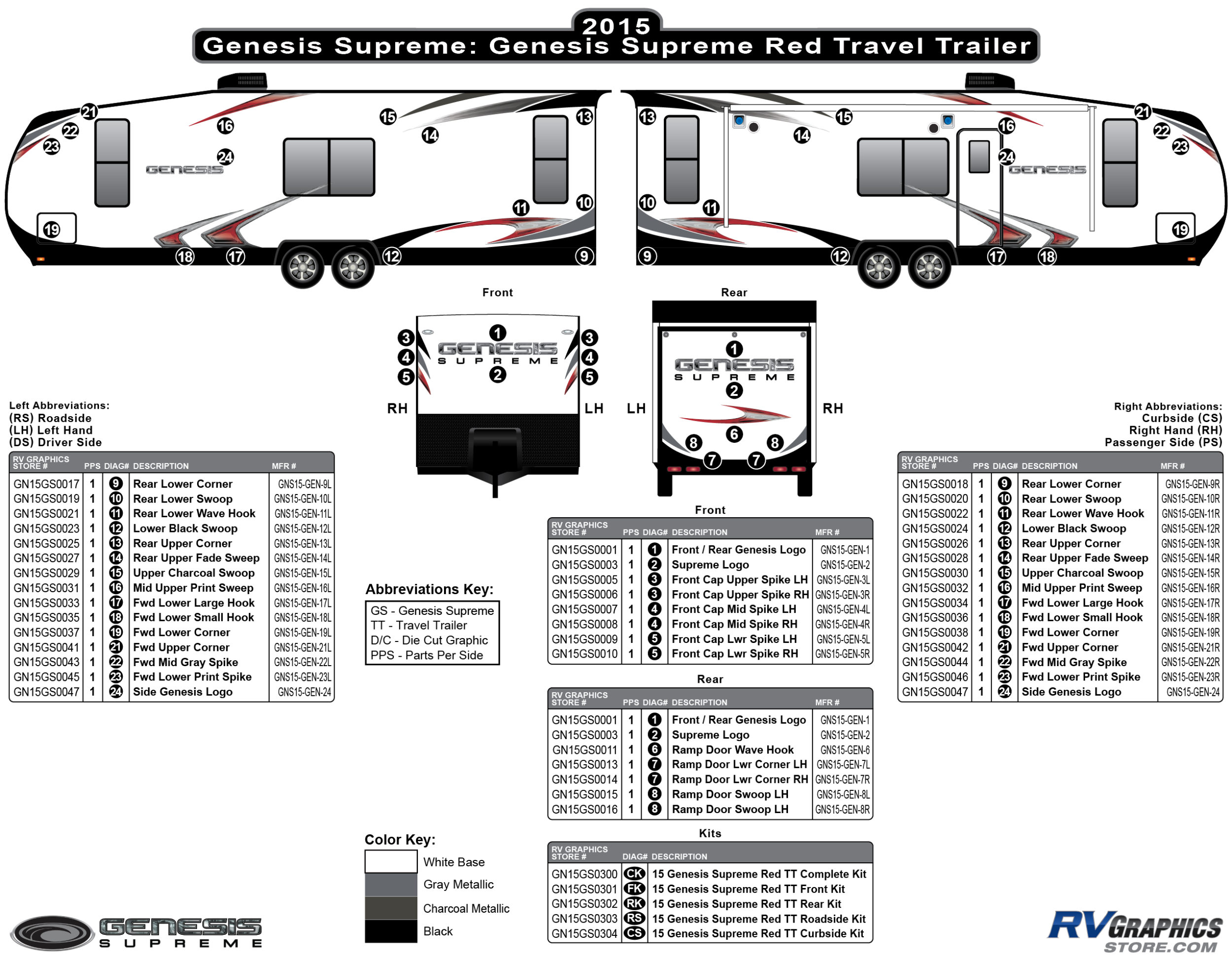 15 Piece 2015 Genesis Red Travel Trailer Curbside Graphics Kit
