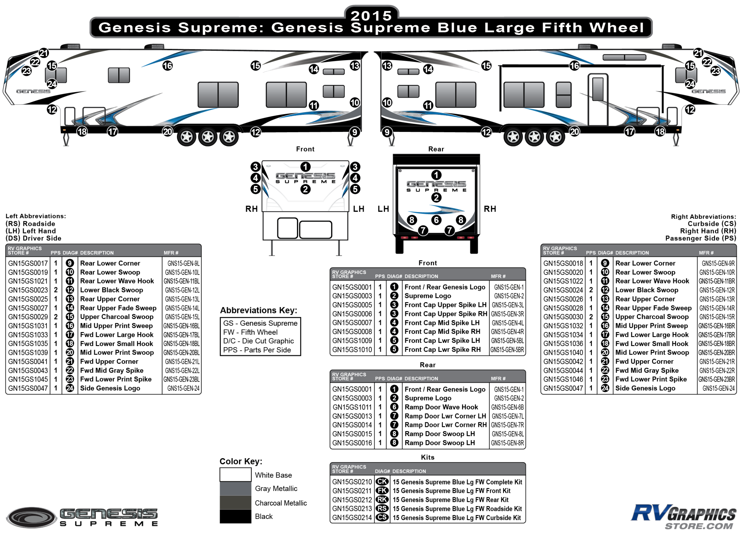 49 Piece 2015 Genesis Blue Lg Fifth Wheel Complete Graphics Kit