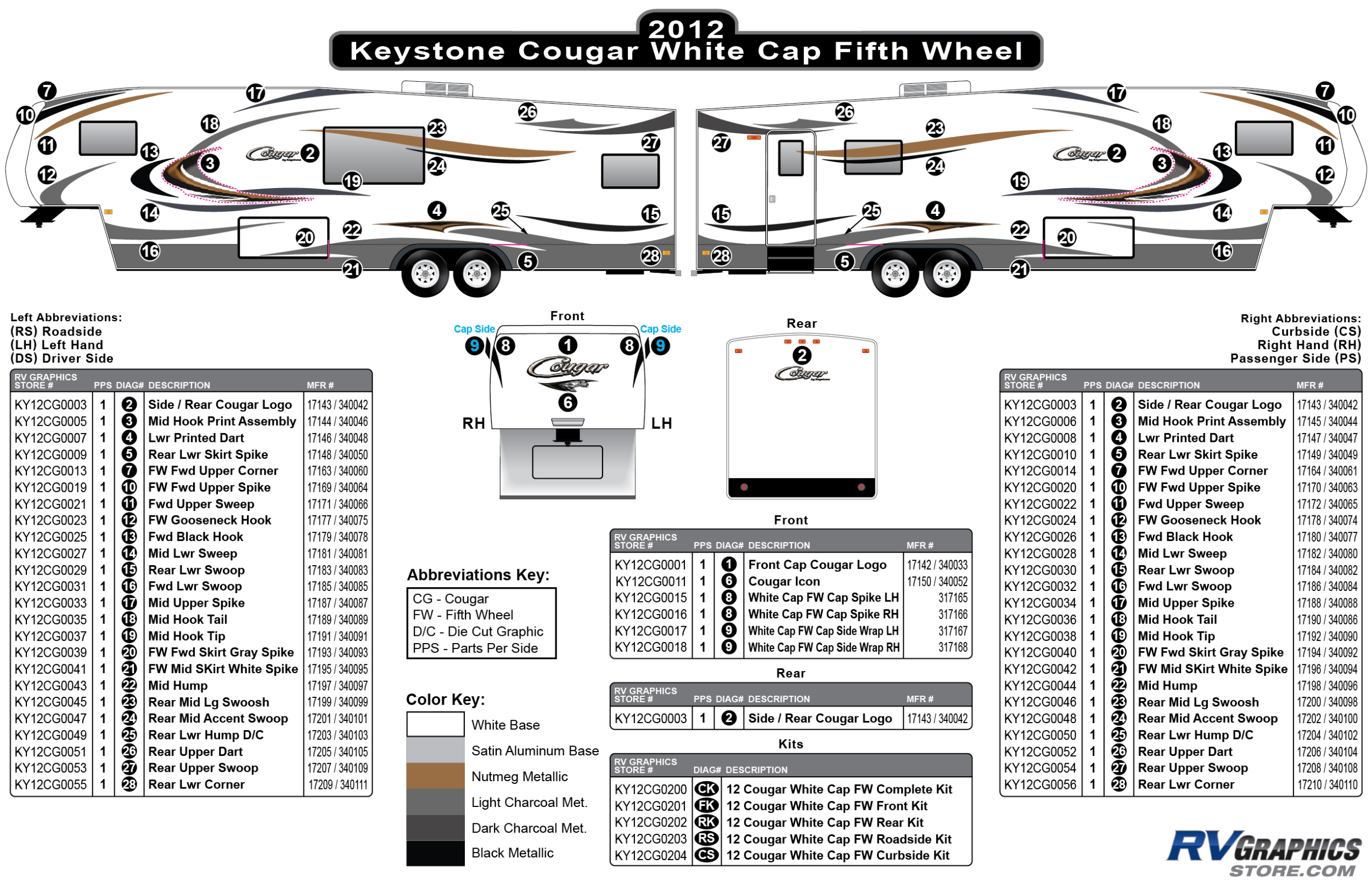 55 Piece 2012 Cougar FW White Cap Complete Graphics Kit
