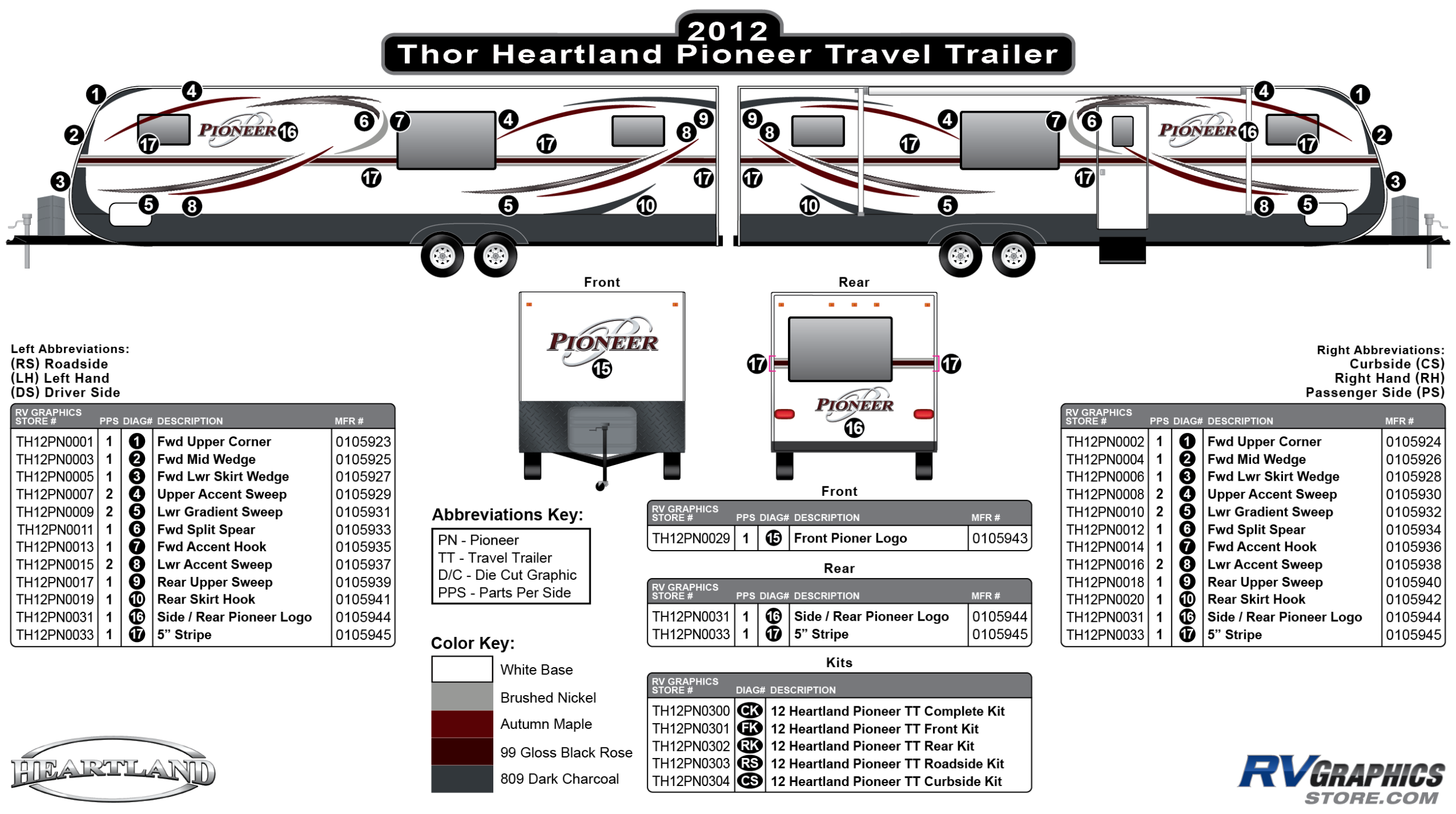 17 Piece 2012 Heartland Pioneer TT Curbside Graphics Kit