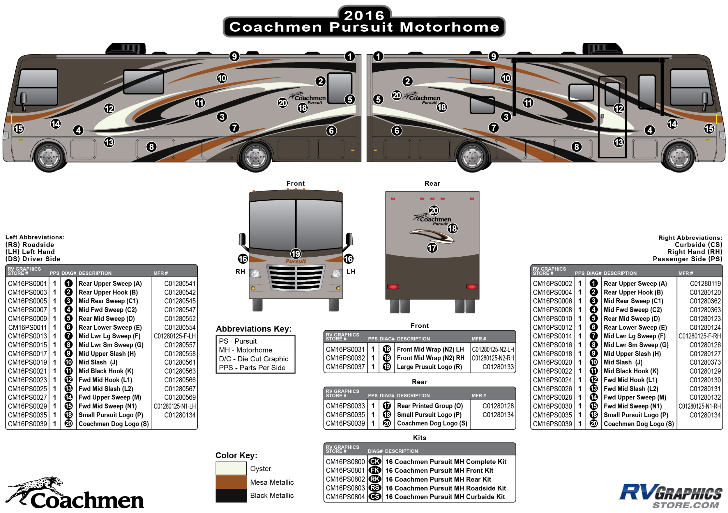 17 Piece 2016 Pursuit Motorhome Curbside Graphics Kit
