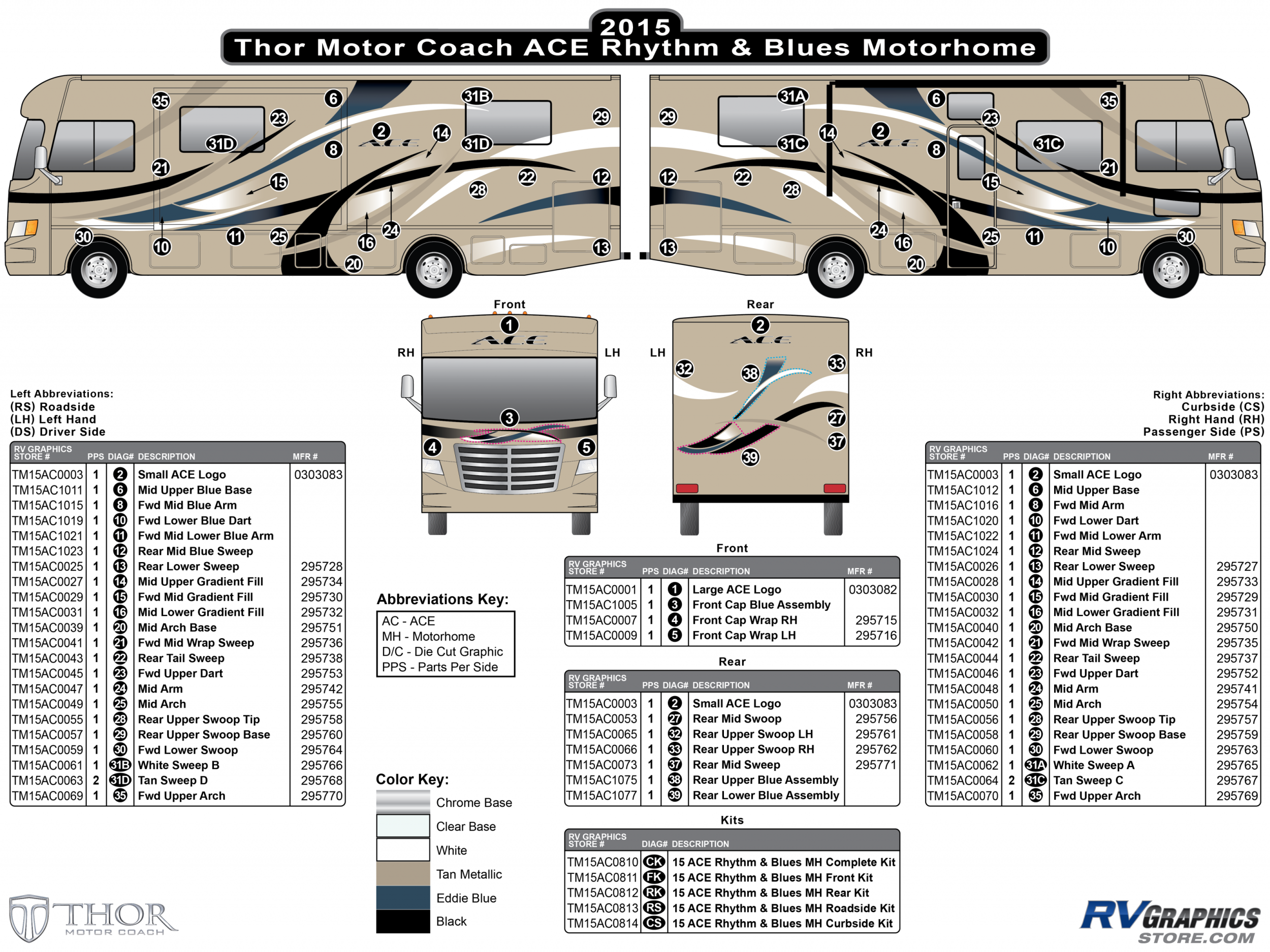 57 Piece 2015 Ace Motorhome Blue Version Complete Graphics Kit