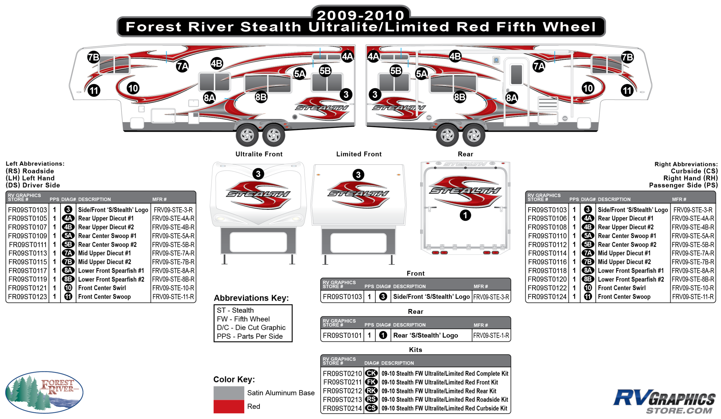 11 Piece 2009 Stealth Red FW UltraLite-Limited Curbside Graphics Kit