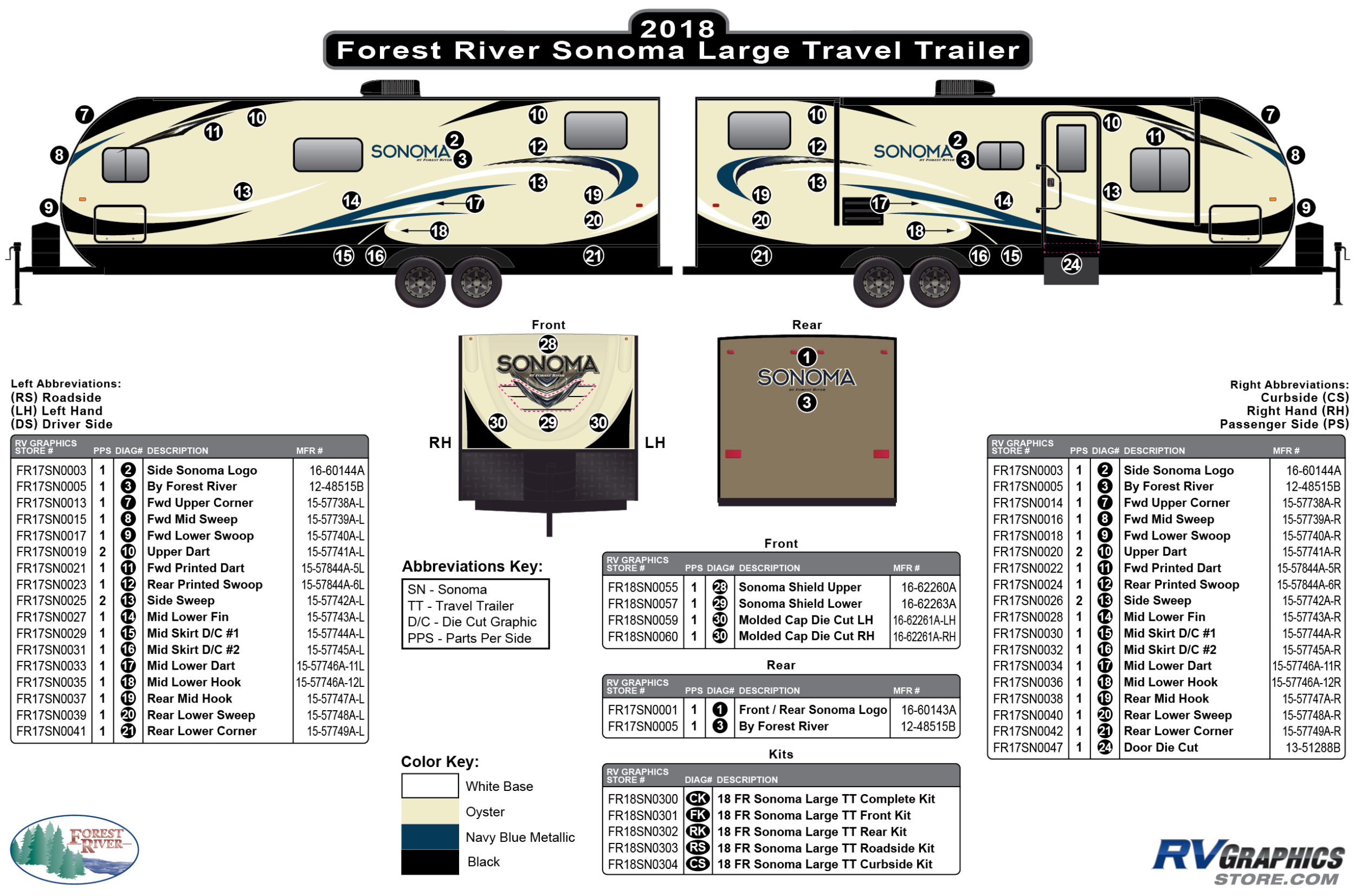 47 Piece 2018 Sonoma Lg Travel Trailer Complete Graphics Kit
