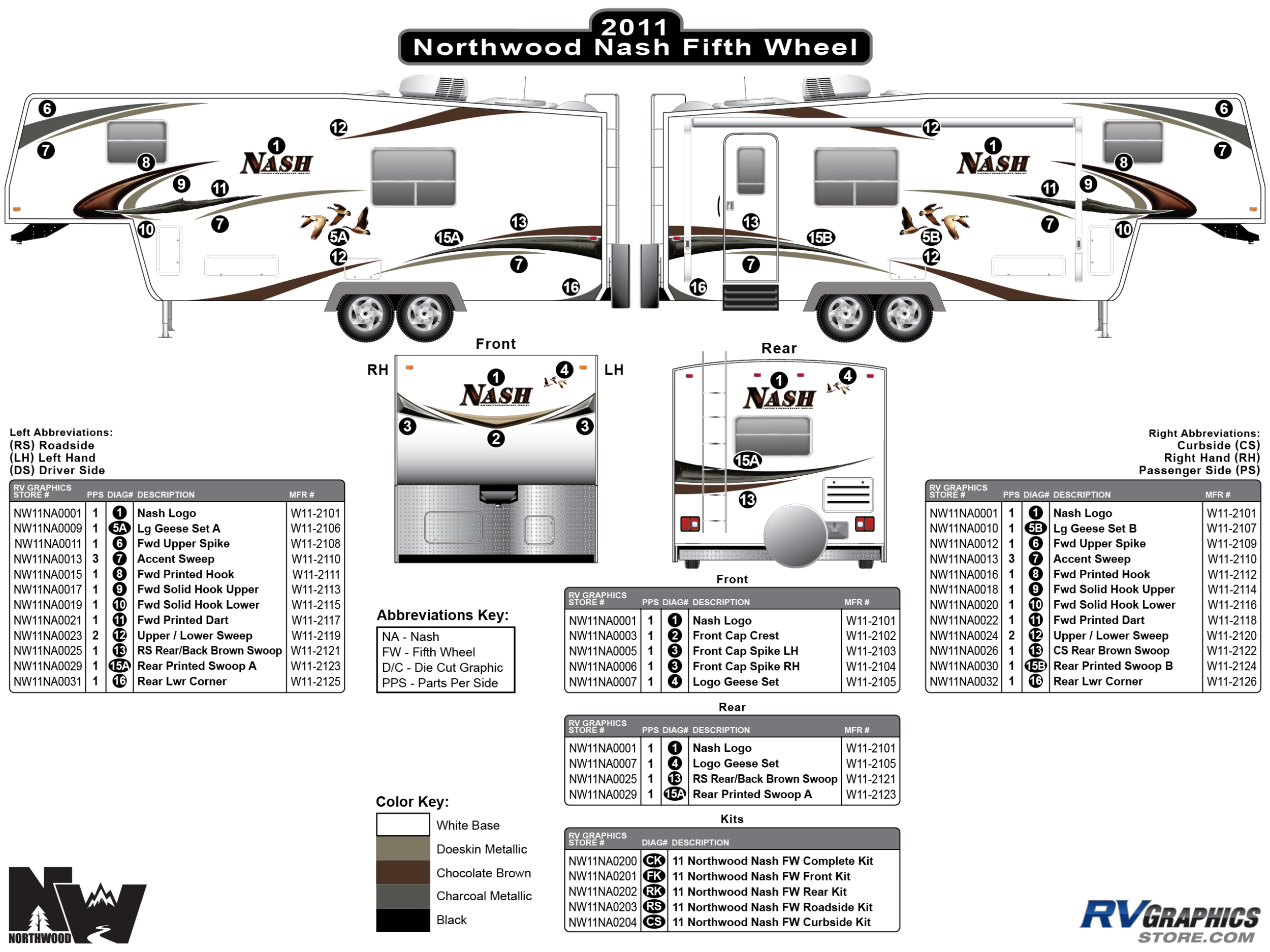 15 Piece 2011 Nash Fifth Wheel Roadside Graphics Kit