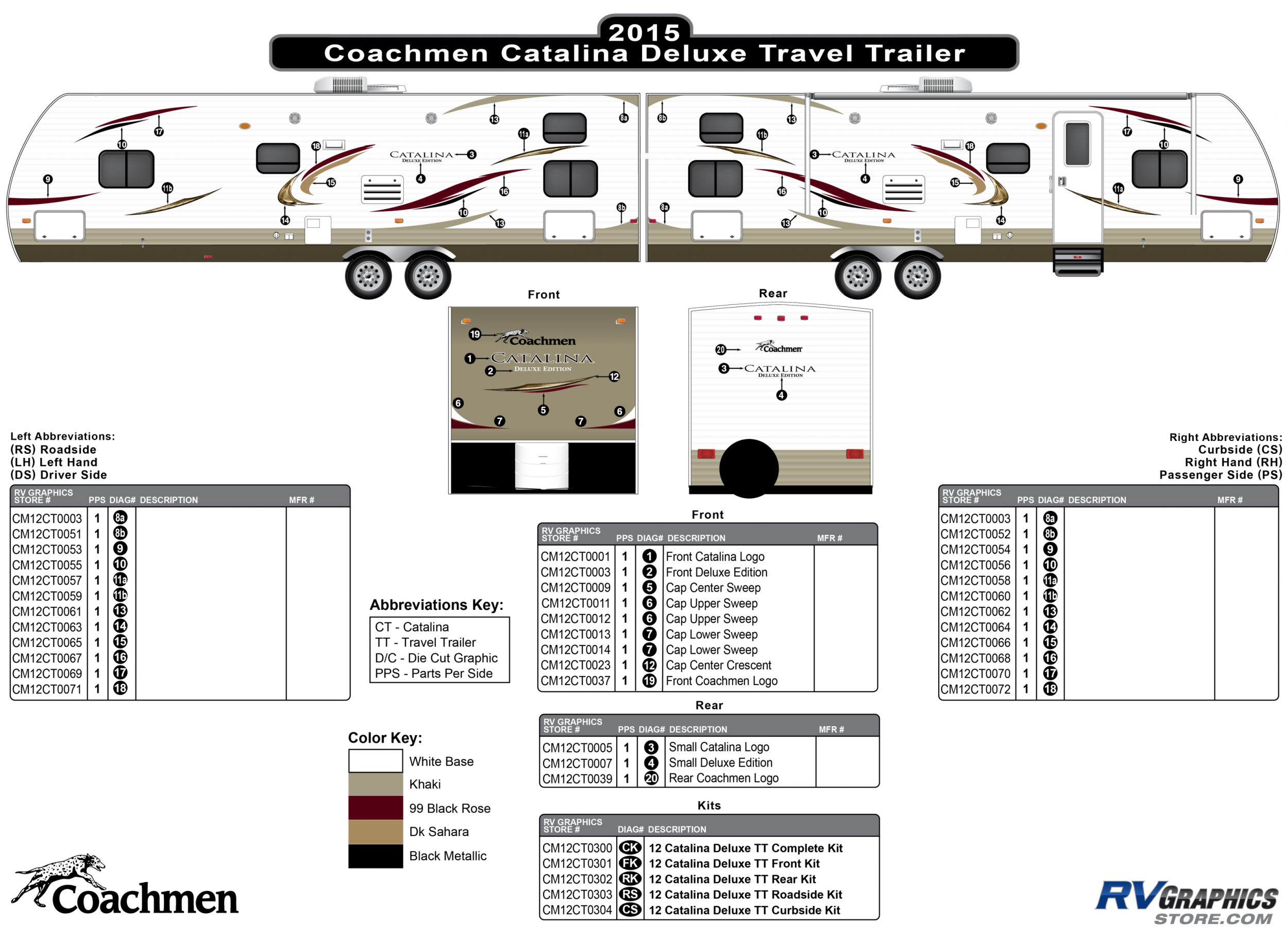 9 Piece 2012 Catalina RV Graphics TT Front Kit Bullet Number: CK Color: 4 Base Colors Height (inches): 8 Length (inches}: 60 Adhesive Type Provided: Comply Paper...