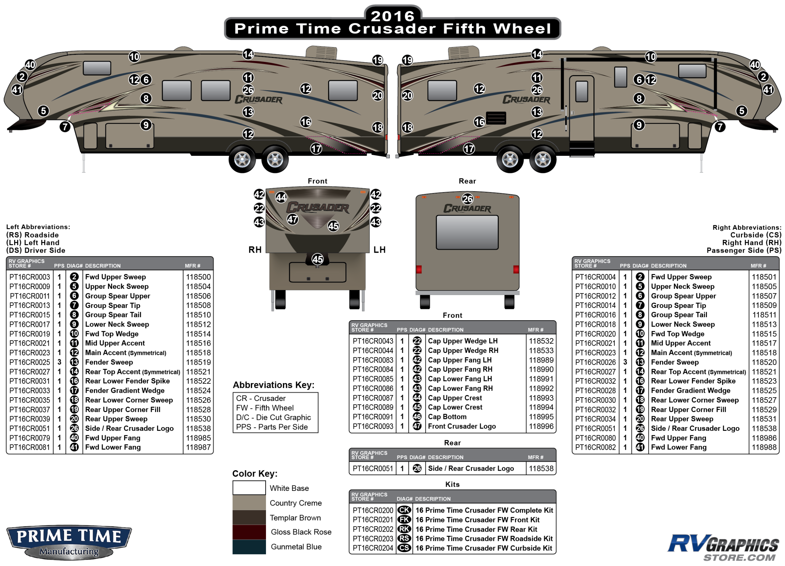 53 Piece 2016 Crusader Fifth Wheel Complete Graphics Kit