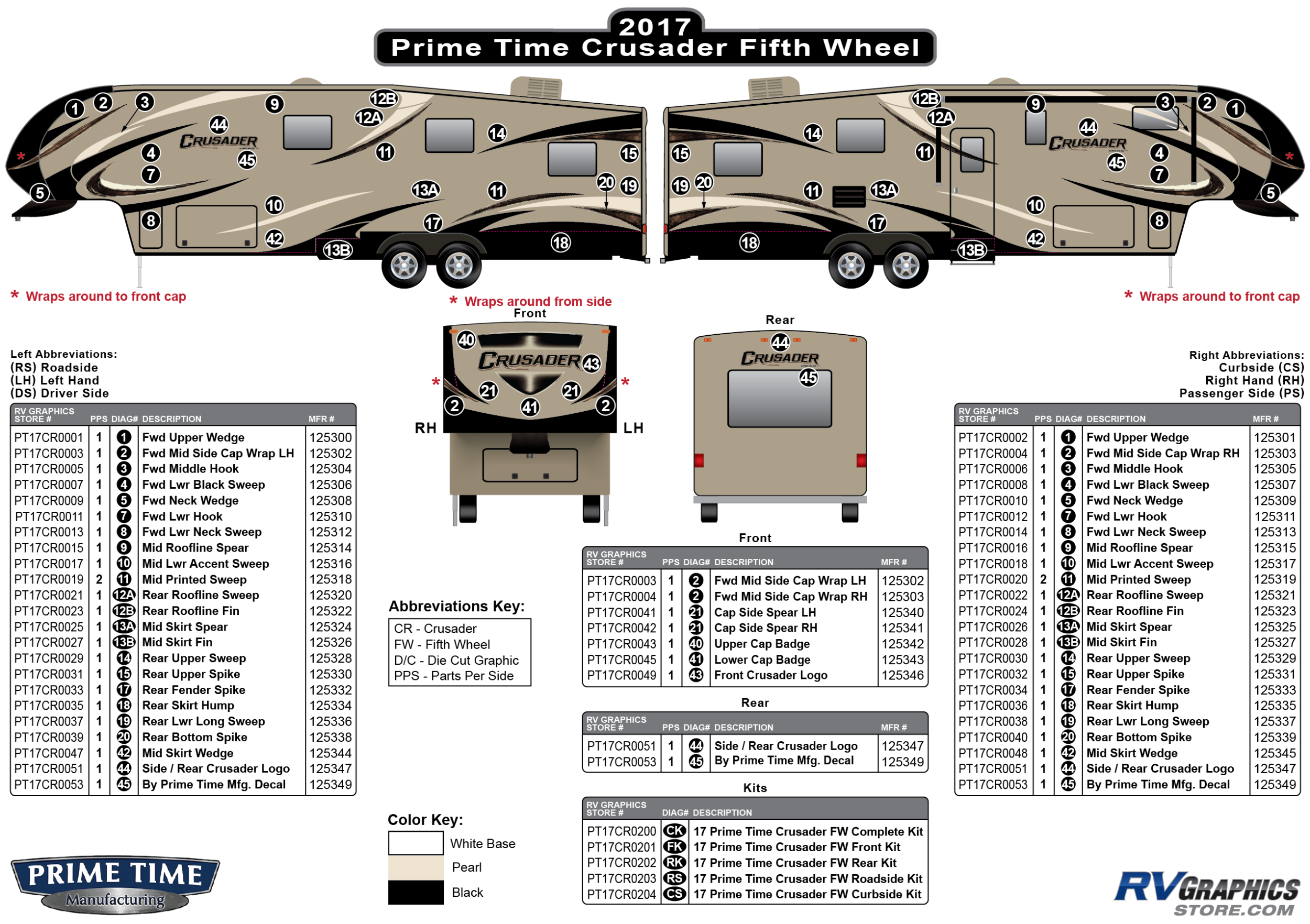 55 Piece 2017 Crusader Fifth Wheel Complete Graphics Kit