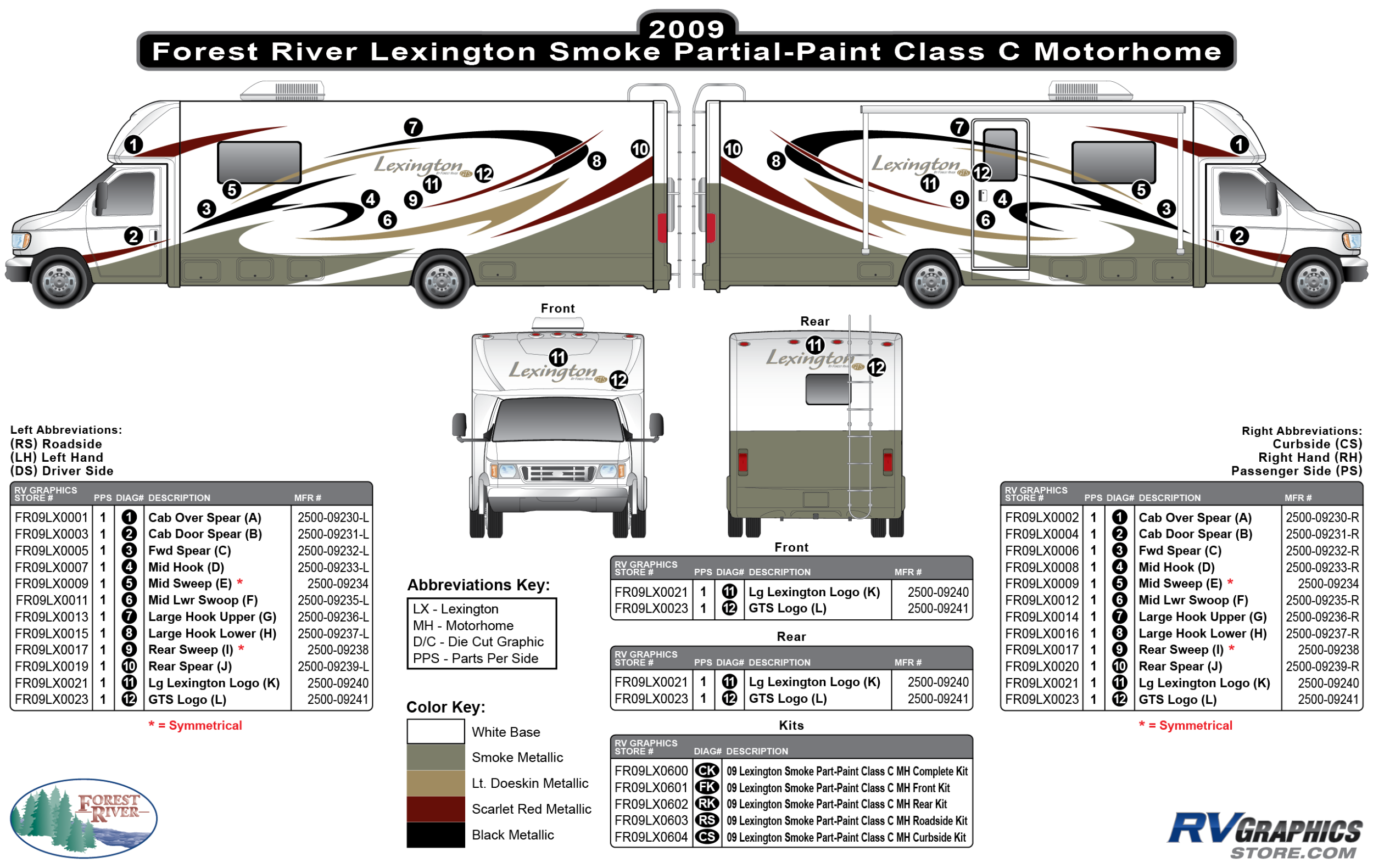 29 Piece 2009 Lexington Motorhome Complete Graphics Kit-Smoke