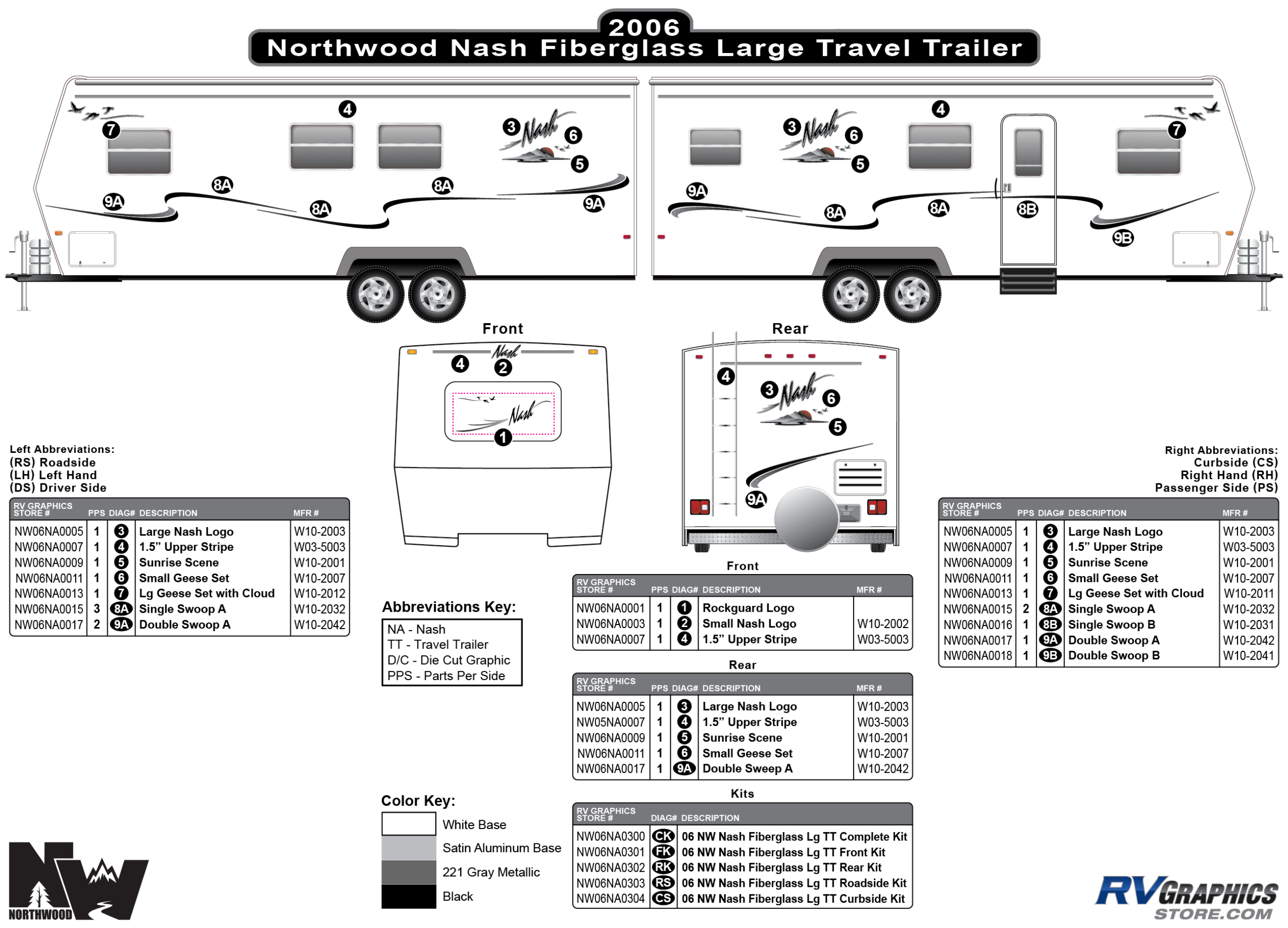 10 Piece 2006 Nash Large Travel Trailer Fiberglass Curbside Graphics Kit