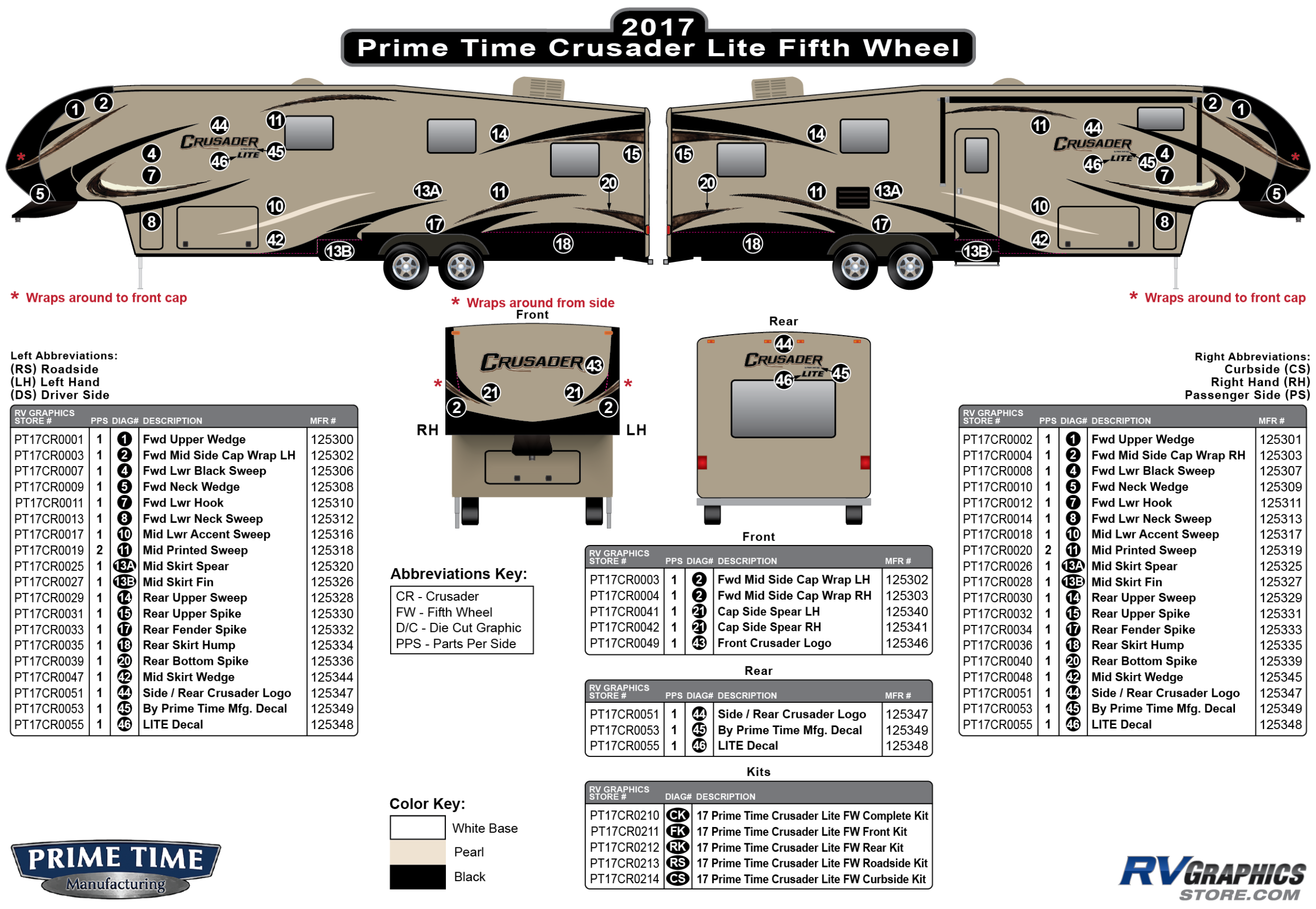 46 Piece 2017 Crusader Lite Fifth Wheel Complete Graphics Kit