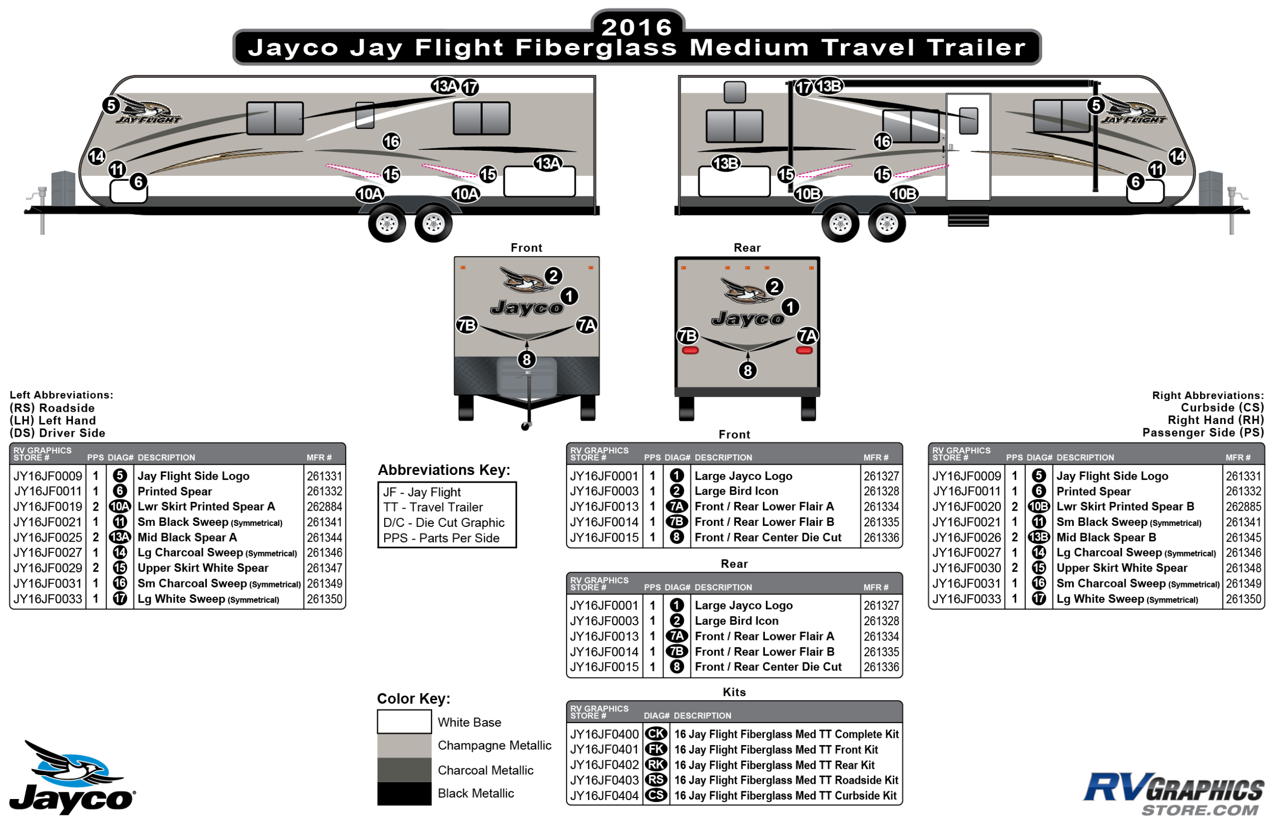 17 Piece 2016 Jayflight Fiberglass Medium TT Curbside Graphics Kit