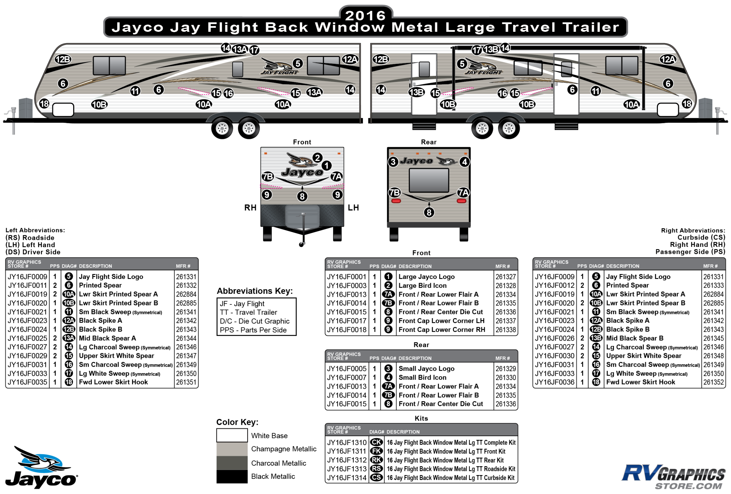 18 Piece 2016 Jayflight Metal Backwindow Lg TT Curbside Graphics Kit