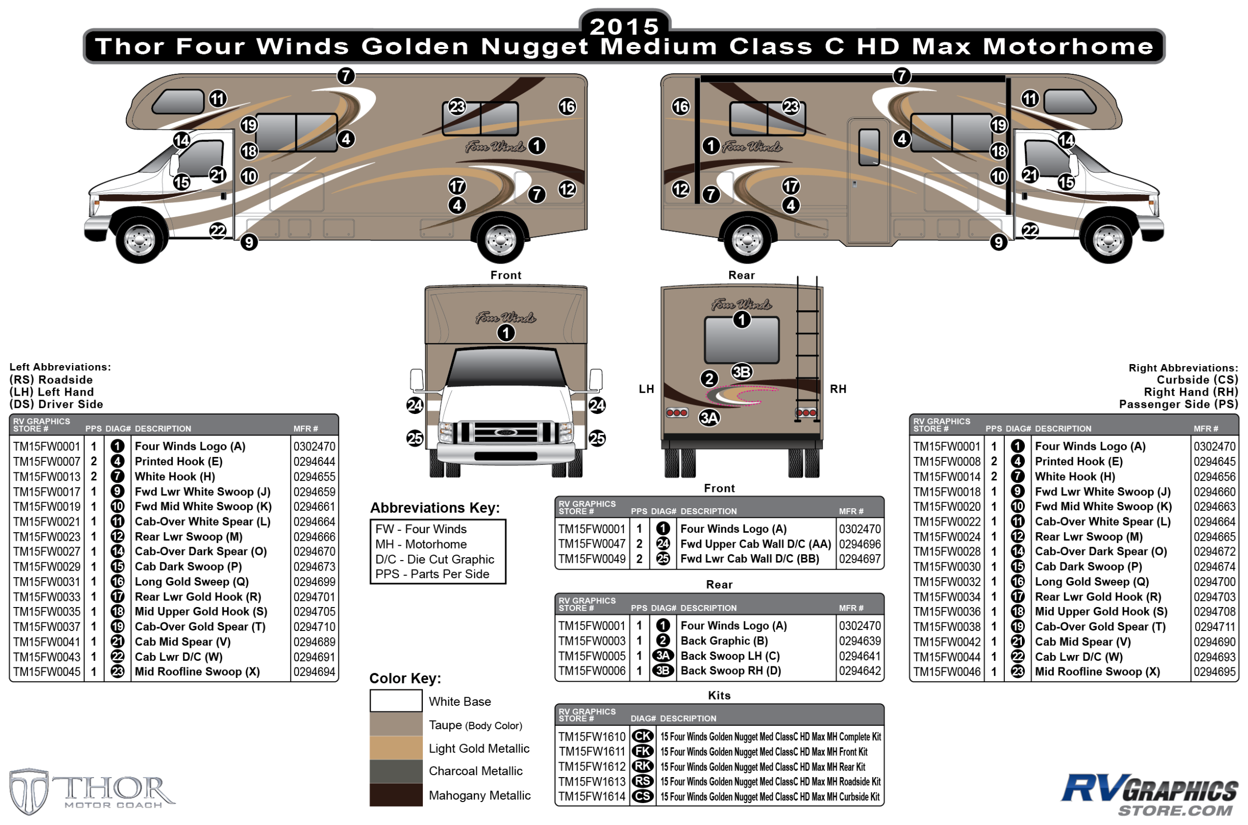 25 Piece 2015 Four Winds MH Medium Golden Nugget Roadside Graphics Kit