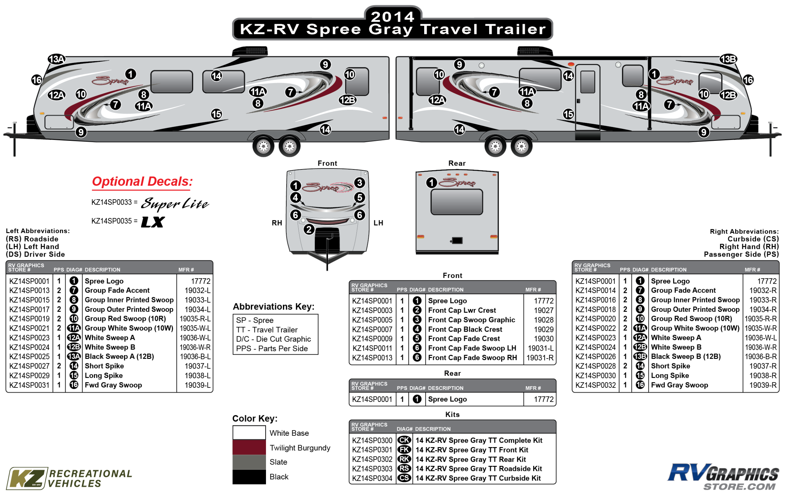 18 Piece 2014 Spree Travel Trailer Gray Sidewalls Curbside Graphics Kit