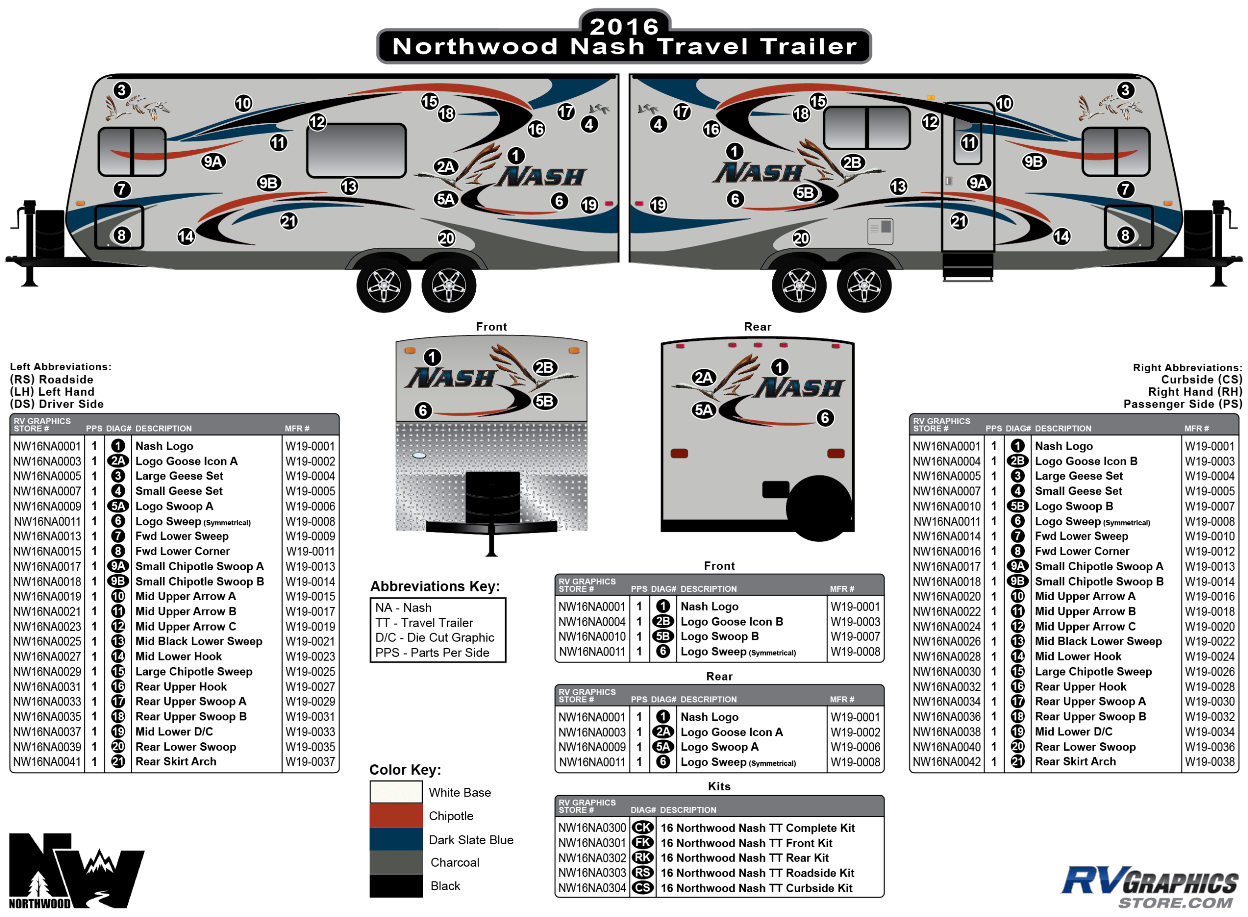 Description: 22 Piece 2016 Nash RV TT Roadside Graphics Kit