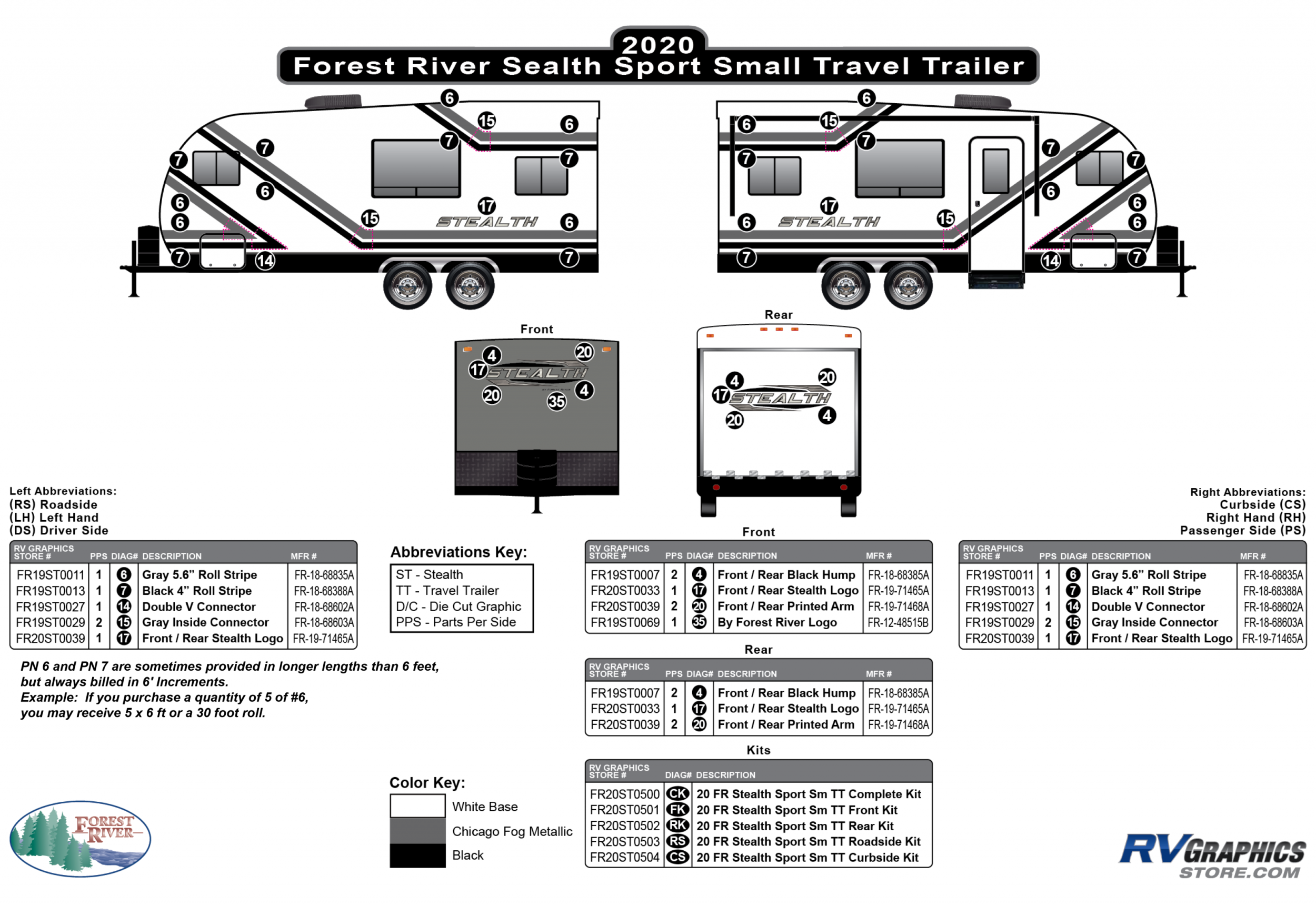 17 Piece 2020 Stealth Sm Sport Travel Trailer Curbside Graphics Kit