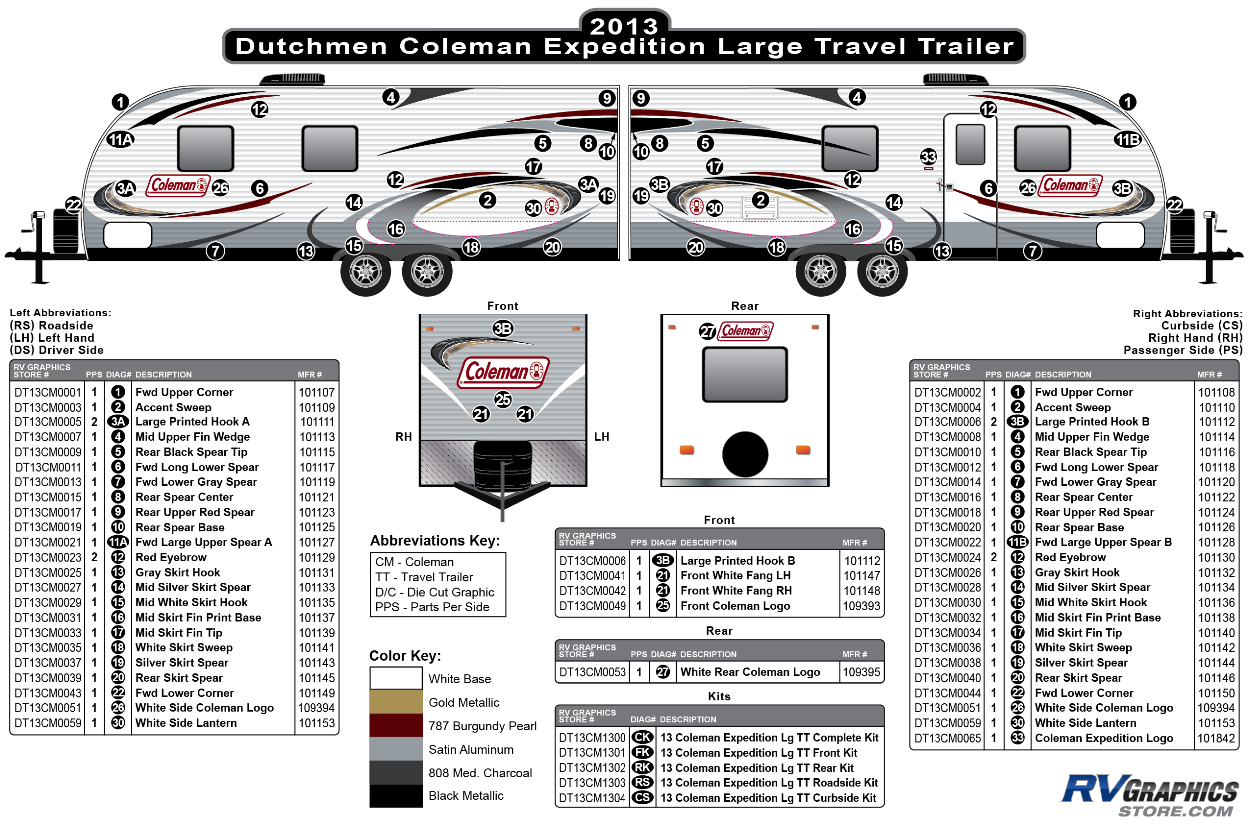 56 Piece 2013 Coleman Expedition Large Travel Trailer Complete Graphics Kit