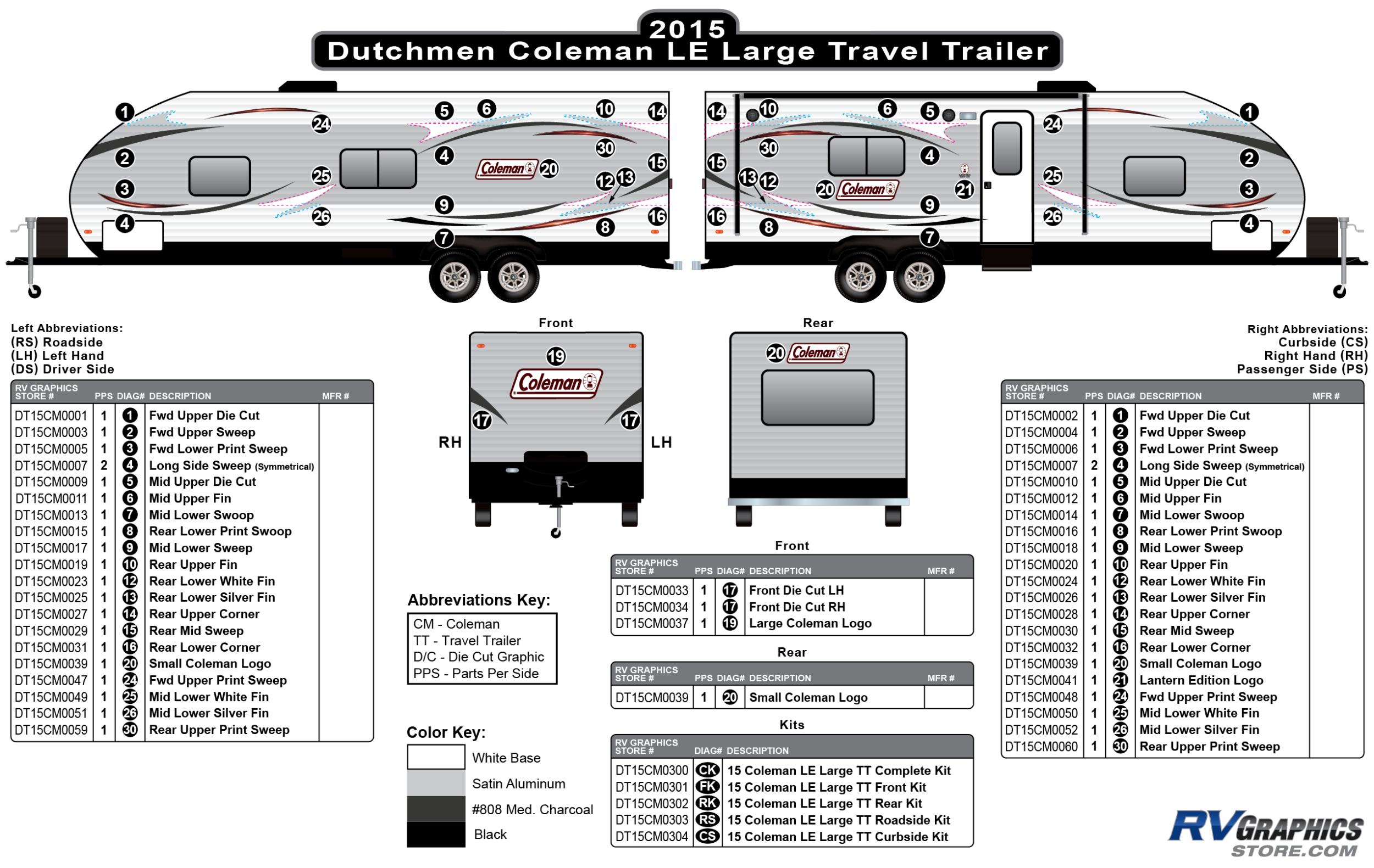 22 Piece 2015 Coleman Lg Travel Trailer Curbside Graphics Kit